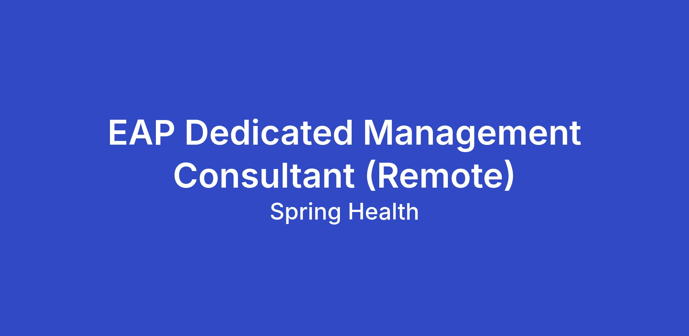The EAP Management Consultation is a unique and exciting opportunity within Spring Health high quality consultations regarding workplace concerns to account human resource representatives, management, and employees. This role will report to the Spring Health Clinical Manager.