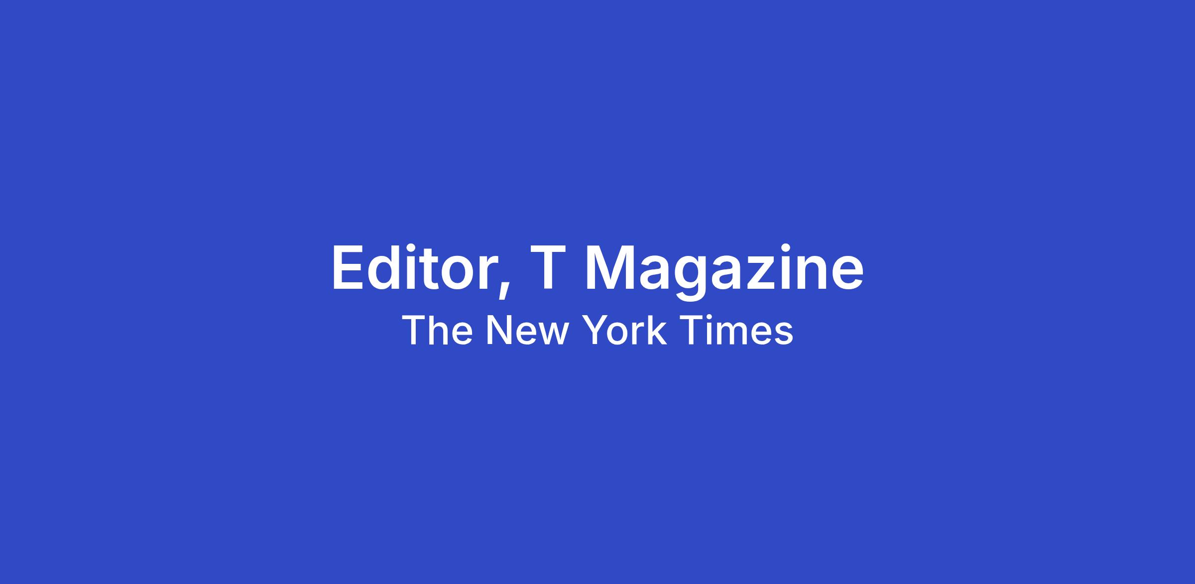 T Magazine is looking for the next visionary editor who will helm the magazine’s coverage of fashion, art, design, food, interiors and travel. Over the last 20 years, T has established itself as a tastemaker, innovator and convener that chronicles culture and the artists who create it.