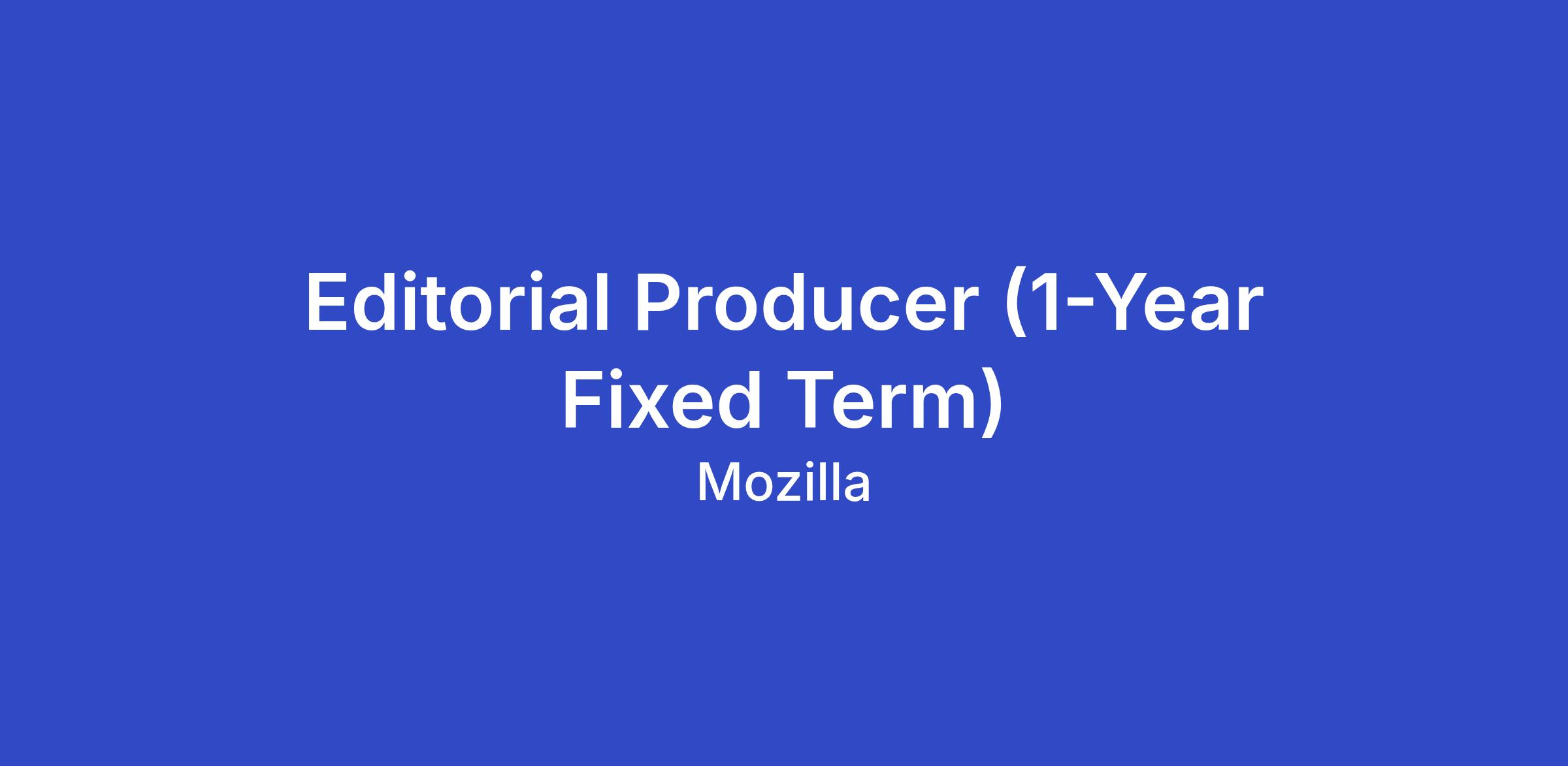 As an Editorial Producer at Mozilla, you will…