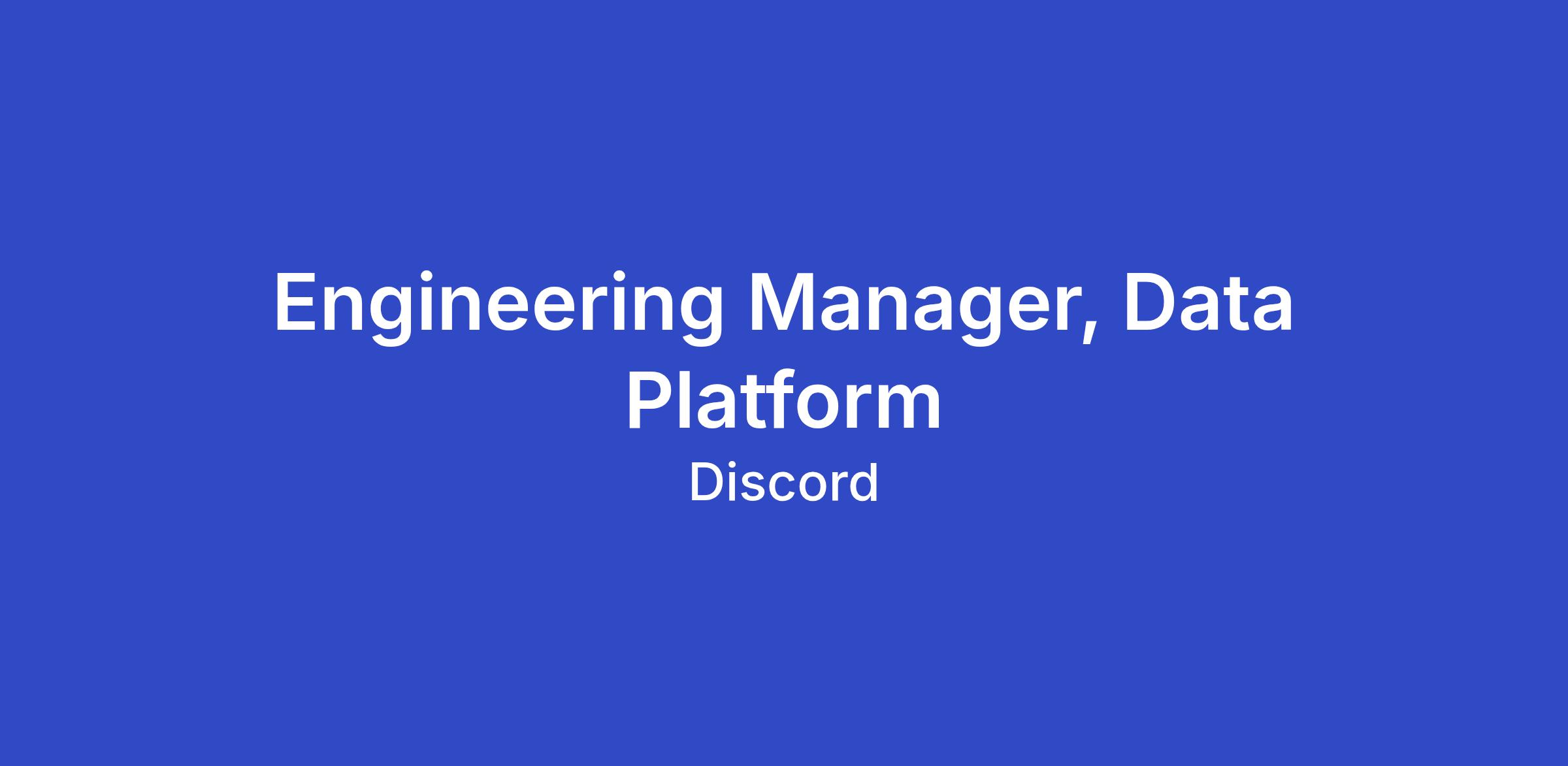 We're looking for an Engineering Manager who gets excited about building world-class teams and data infrastructure at massive scale. Someone who cares deeply about the communities we serve and is passionate about developing engineers who build lovable products for Discord users and Discord engineers alike. You'll lead a team building the next generation Data Platform that powers decisions for one of the most vibrant platforms in the world.