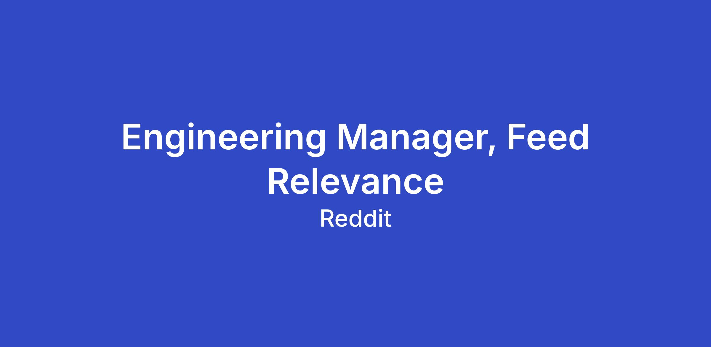 Reddit is looking for experienced Engineering Managers to lead our Feed Recommendations and Feed Ranking teams. In this role, you’ll lead a high-impact team of Machine Learning Engineers dedicated to improving relevance, personalization, and discovery of the core product. Whether focusing on the retrieval and selection of content or the sophisticated modeling that determines its final order, your work will directly shape the personalized experiences of over 120M+ daily users.