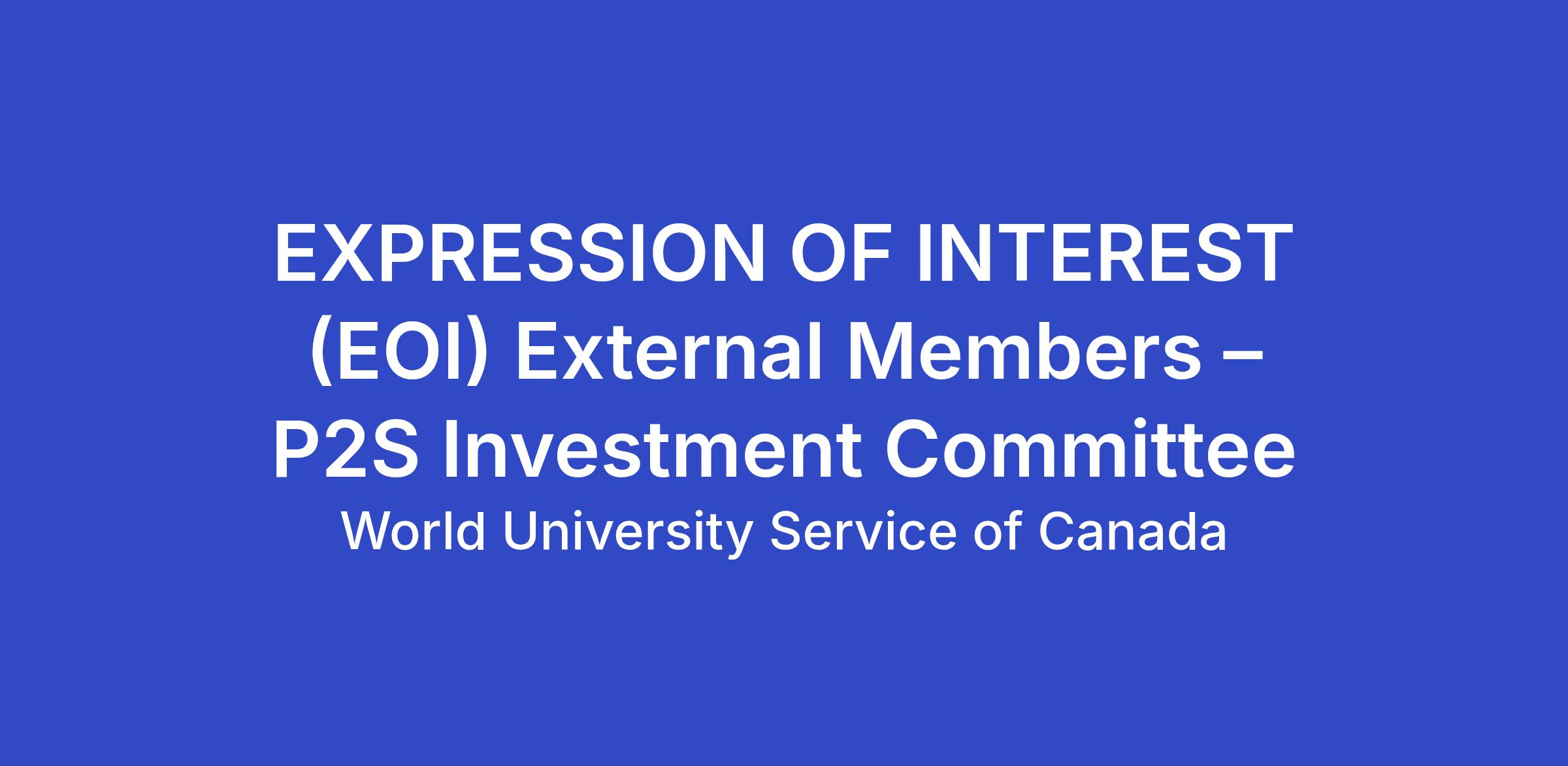 WUSC invites Expressions of Interest from qualified individuals to serve as external members of the P2S Investment Committee in the following categories: