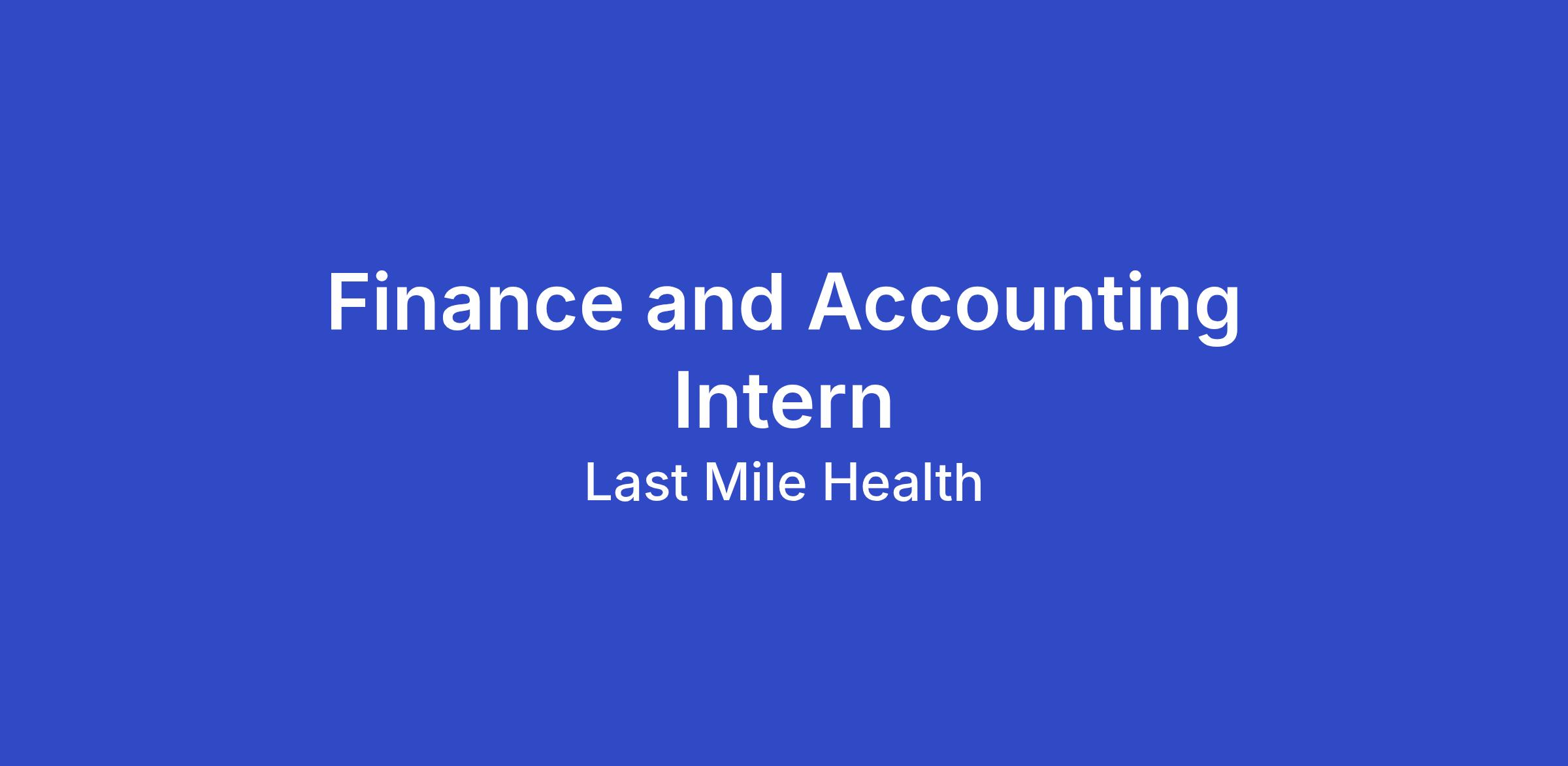 Join us as a Finance and Accounting Intern, where you’ll support the Finance team in executing day-to-day financial operations, ensuring transactions are processed accurately, documentations are complete, and records are properly maintained in line with Last Mile Health policies and donor requirements.