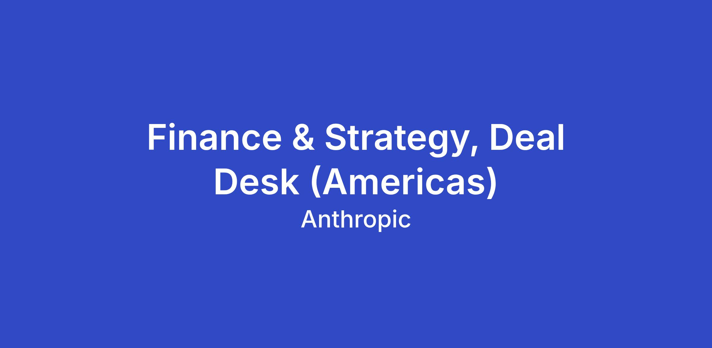 You will play a critical role in scaling our revenue by managing complex deals and developing standardized processes that balance speed with control. You'll work at the intersection of finance, sales, and legal teams to ensure our products reach customers to support Anthropic's rapid growth while maintaining the financial discipline and risk management practices essential for a frontier AI company. You'll have the opportunity to build scalable processes from the ground up and directly impact some of our most strategic customer relationships.