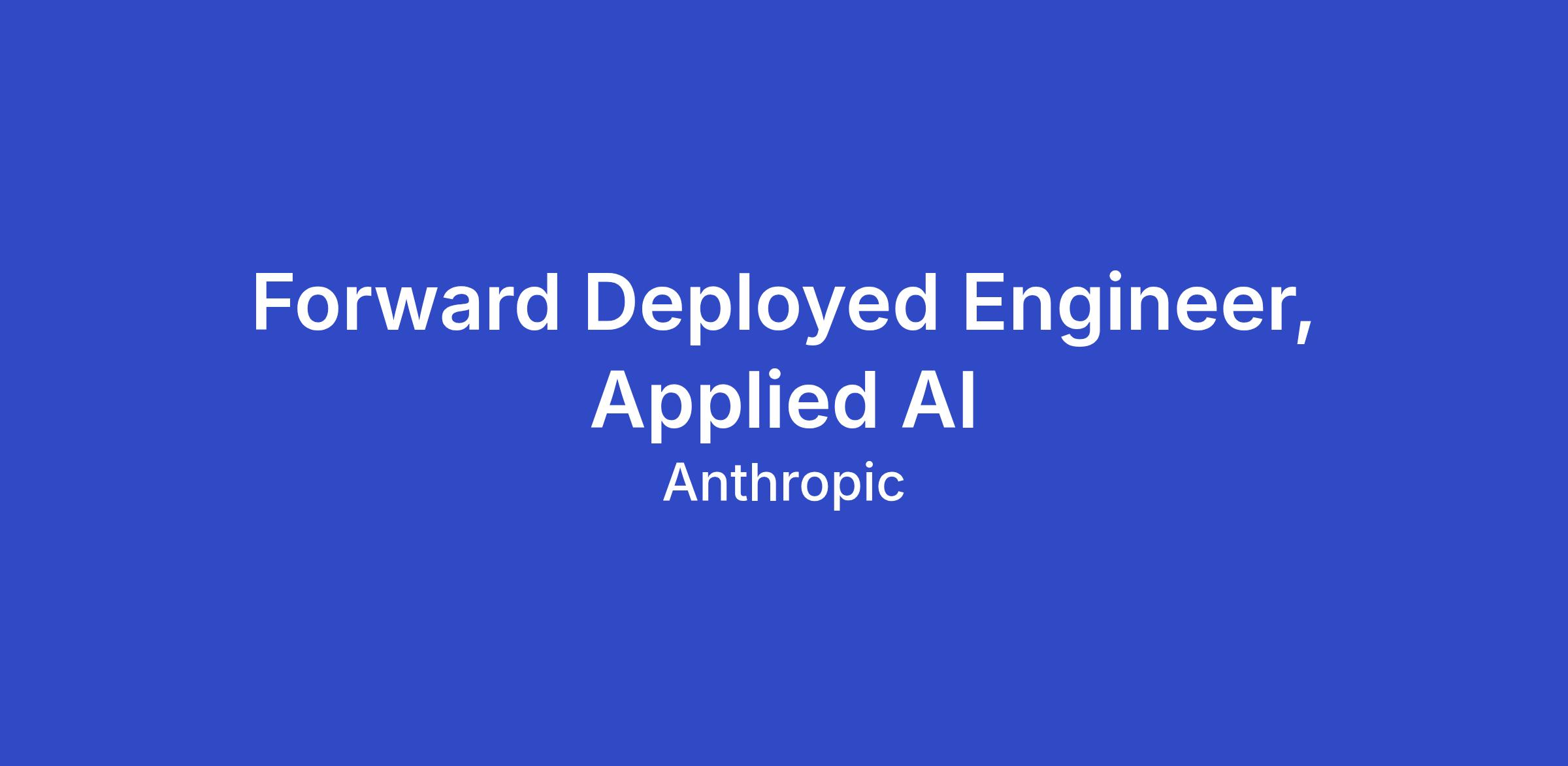 As a member of the Applied AI team at Anthropic, you will be a Forward Deployed Engineer (FDE) who embeds directly with our most strategic customers to drive transformational AI adoption. You will collaborate closely with customer teams to ship advanced AI applications that solve real world business problems. Our FDEs engage with customers to accelerate the adoption of existing products and create new applications built on our models.