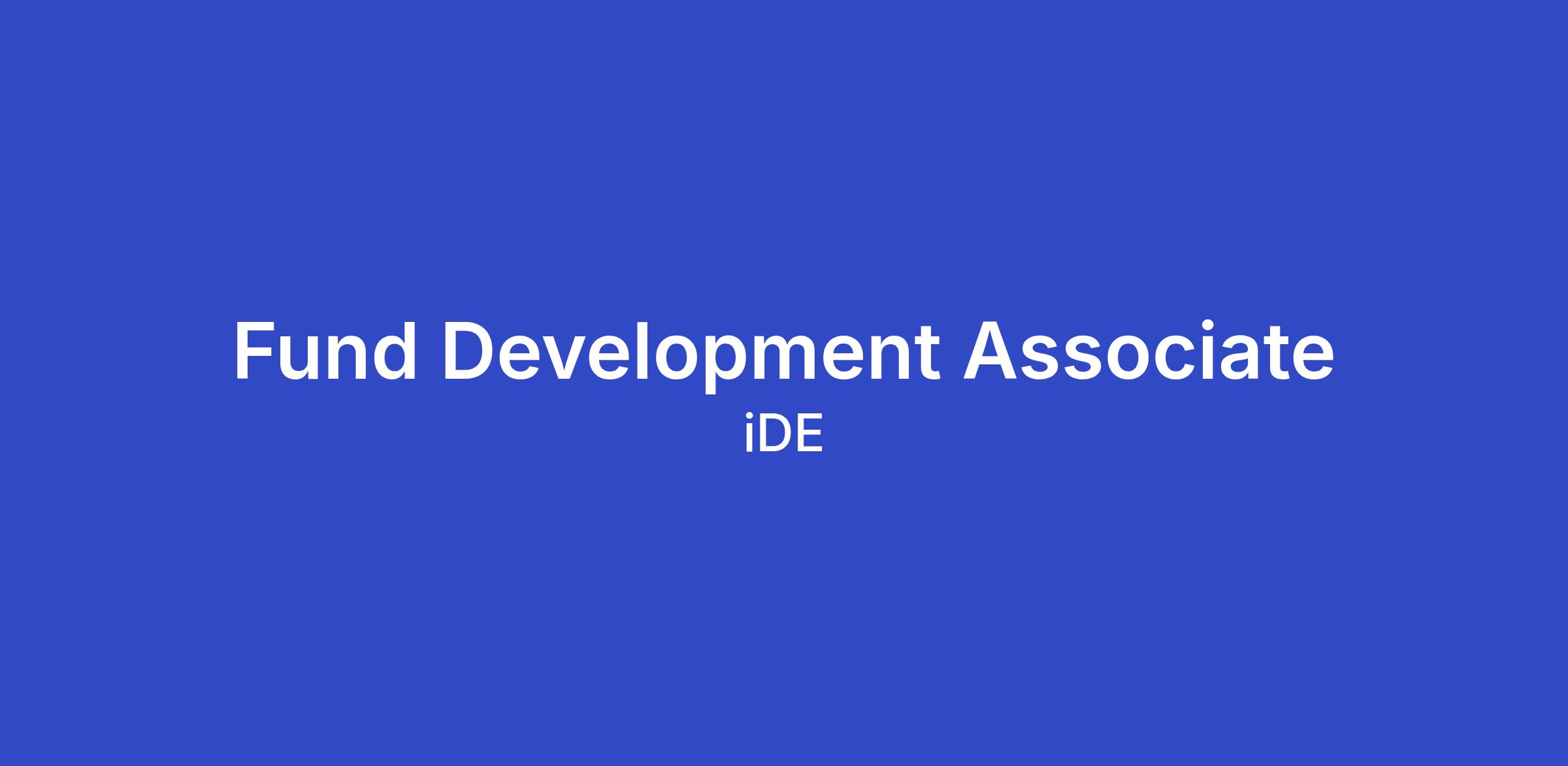 The Fund Development Associate prospects, solicits and stewards corporate, foundation and individual donors with the main goal of funding the vision for long-term prosperity and wellbeing in rural communities around the world. This person demonstrates an understanding of organizational priorities, mission, vision, values and strategic goals and objectives, as well as trust and teamwork in all aspects of iDE business.