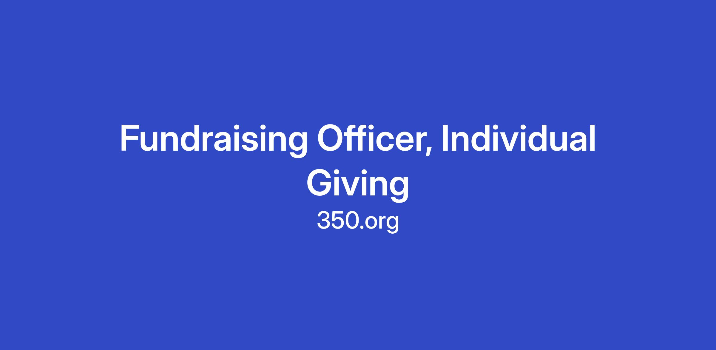 350.org is looking for a Fundraising Officer for Individual Giving who has 3+ years of experience on a fundraising team and managing a portfolio of individual donors to drive $2M+ in annual revenue.