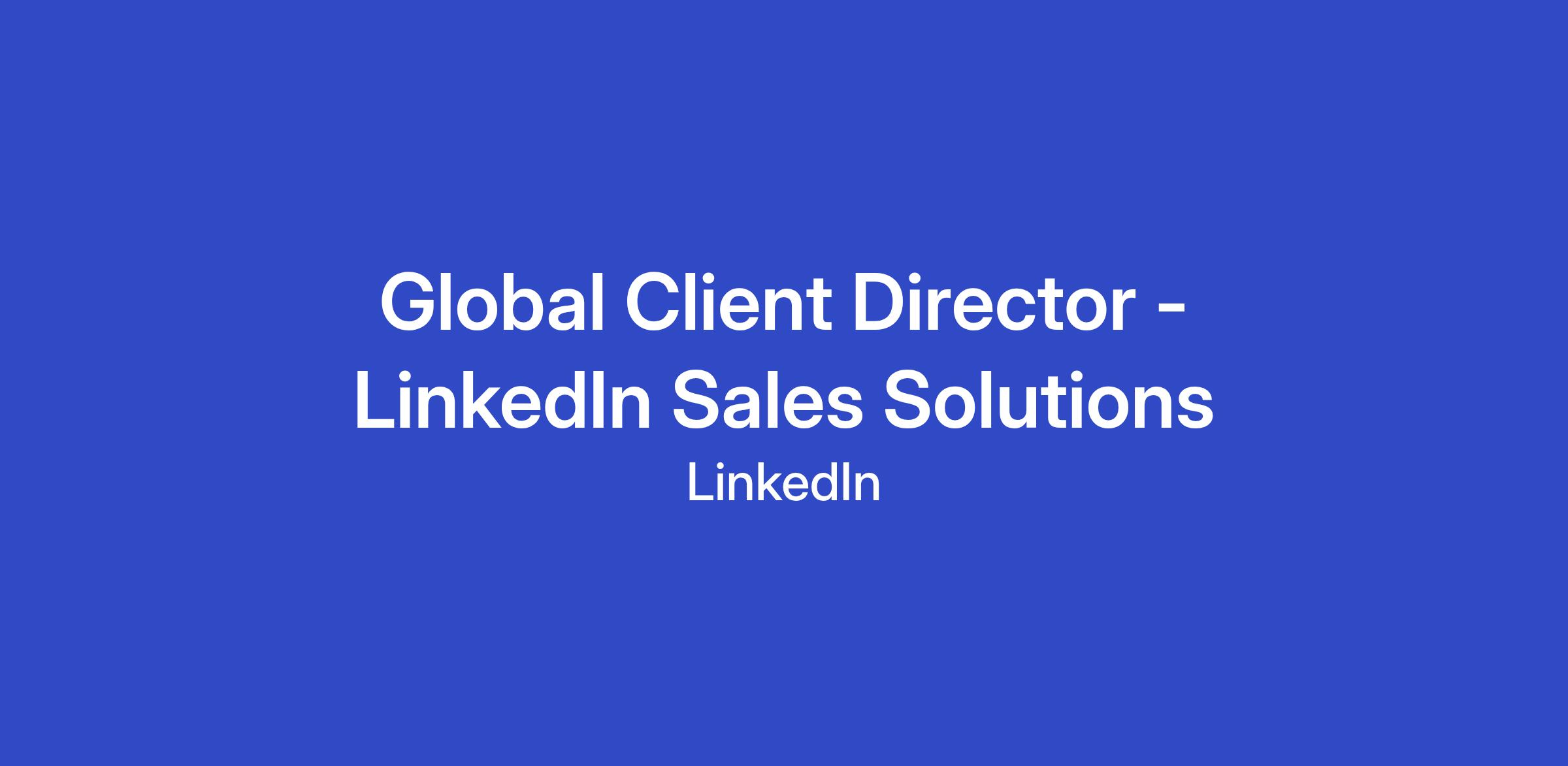 This is an opportunity to join the exciting and dynamic LinkedIn Sales Solutions global accounts program selling Sales Navigator. The role is for a Global Client Director, responsible for renewing and growing the Sales Navigator footprint within a select number of vitally important named accounts.