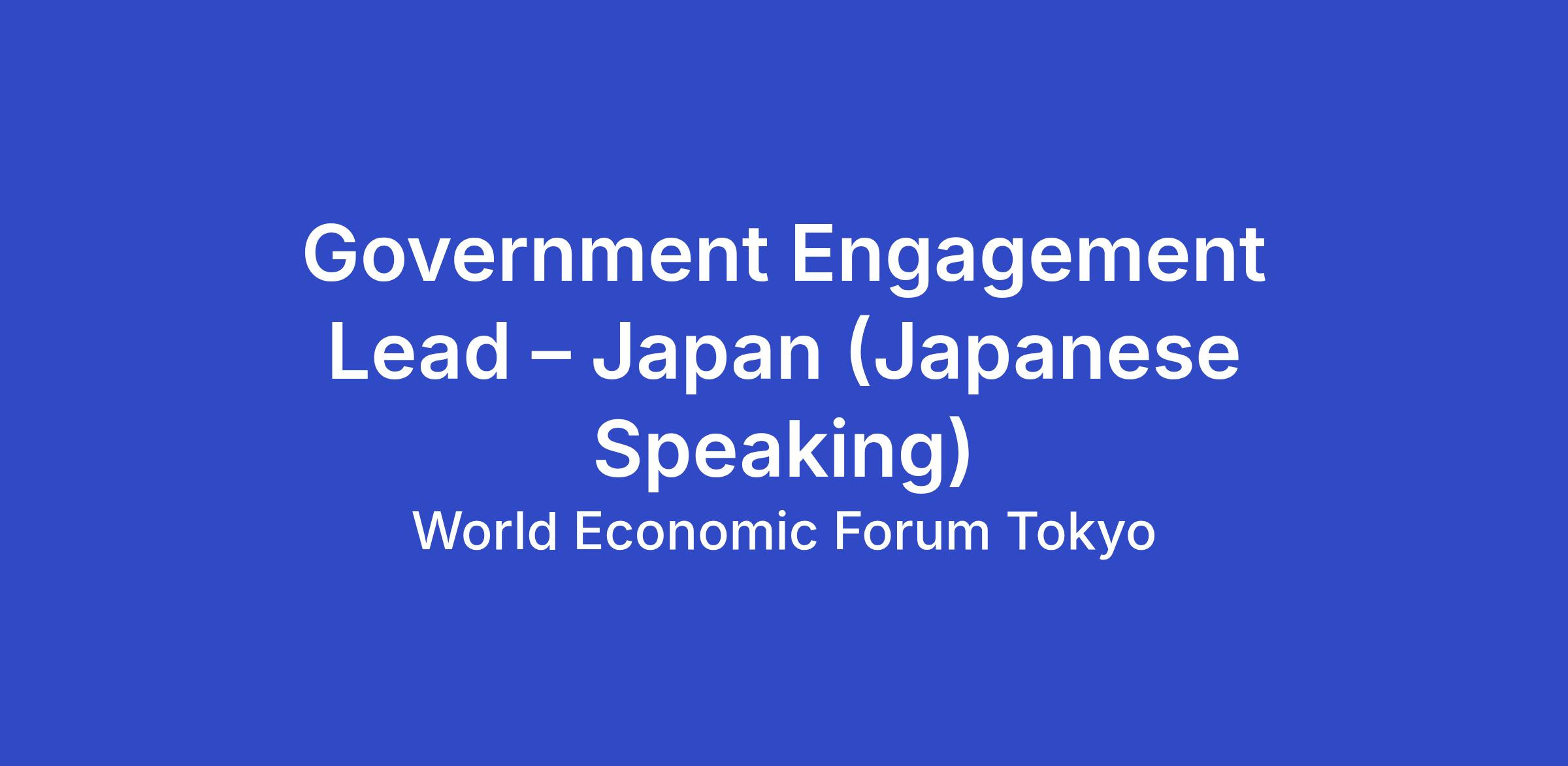 Government Engagement Lead – Japan (Japanese Speaking)