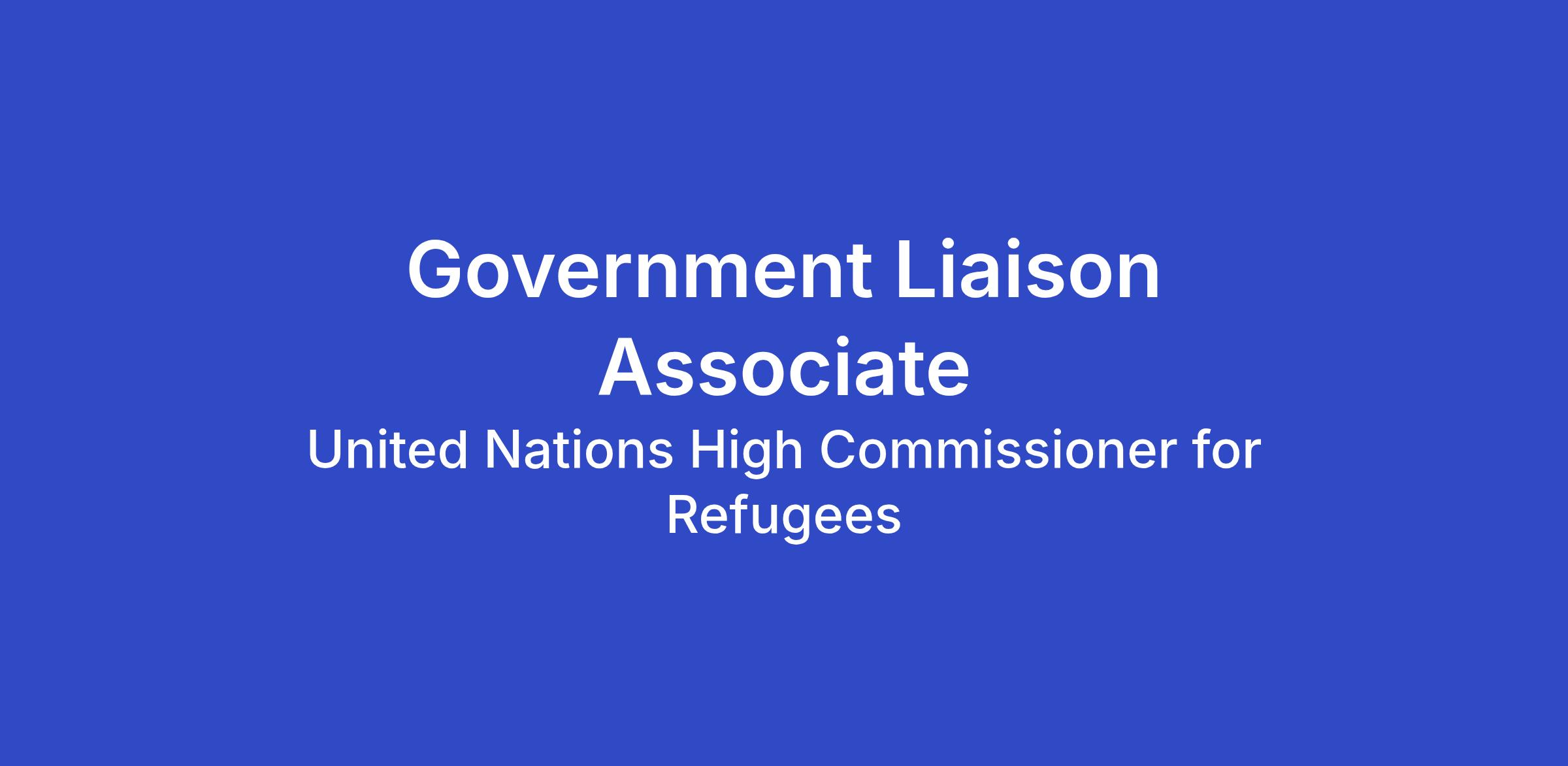 Under the supervision of the (Senior) Government Liaison Officer, the responsibilities of the Government Liaison Associate is to give, obtain and exchange information requiring discussions and explanations both to UNHCR staff members, Government authorities and other external parties on subject matters which may be of importance to the Organization.