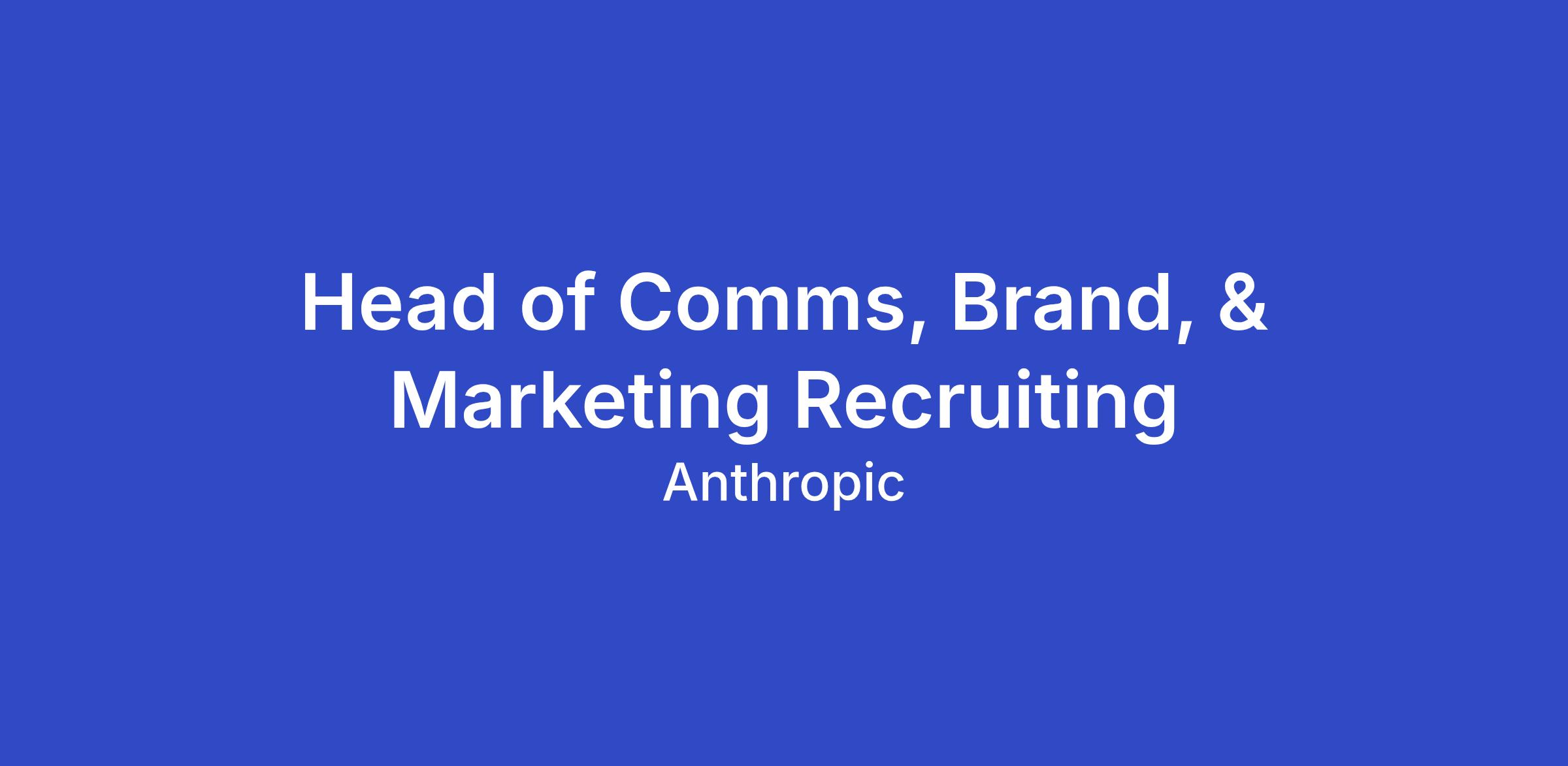 We're looking for a Head of Comms, Brand, & Marketing Recruiting to lead recruiting across three of Anthropic's most visible functions. This is a senior leadership role that requires exceptional stakeholder partnership, operational rigor, and the ability to serve as connective tissue across functions that shape how Anthropic shows up in the world.