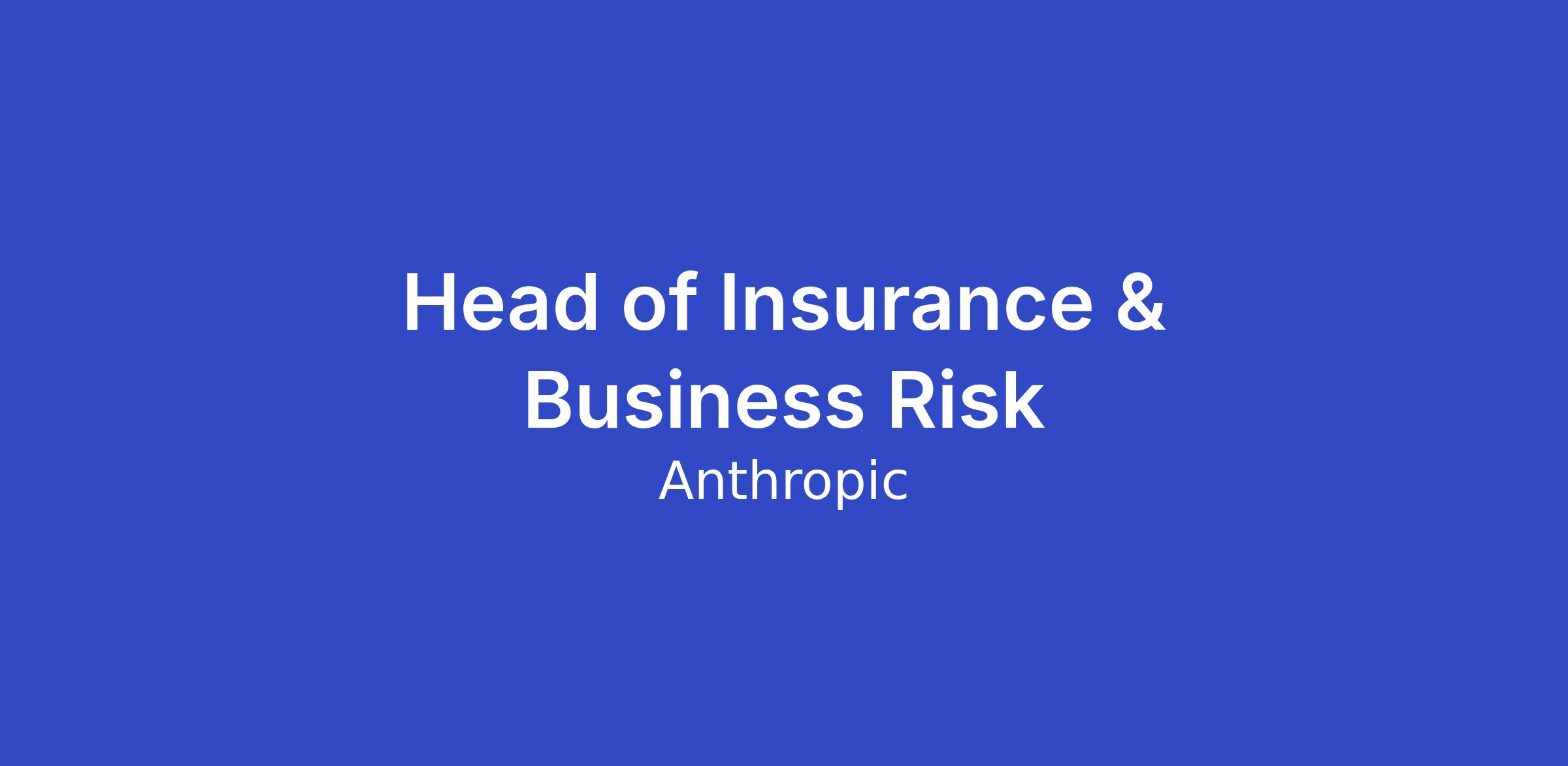 Anthropic is looking for a Head of Insurance & Business Risk to build this pivotal function from the ground up. You'll own Anthropic's corporate insurance program end-to-end — assessing our risk landscape, designing and placing coverage, and developing the broader risk mitigation strategies that protect the company as we grow. This role presents the opportunity to quickly scale a risk management program while shaping how the insurance industry understands emerging AI risks.