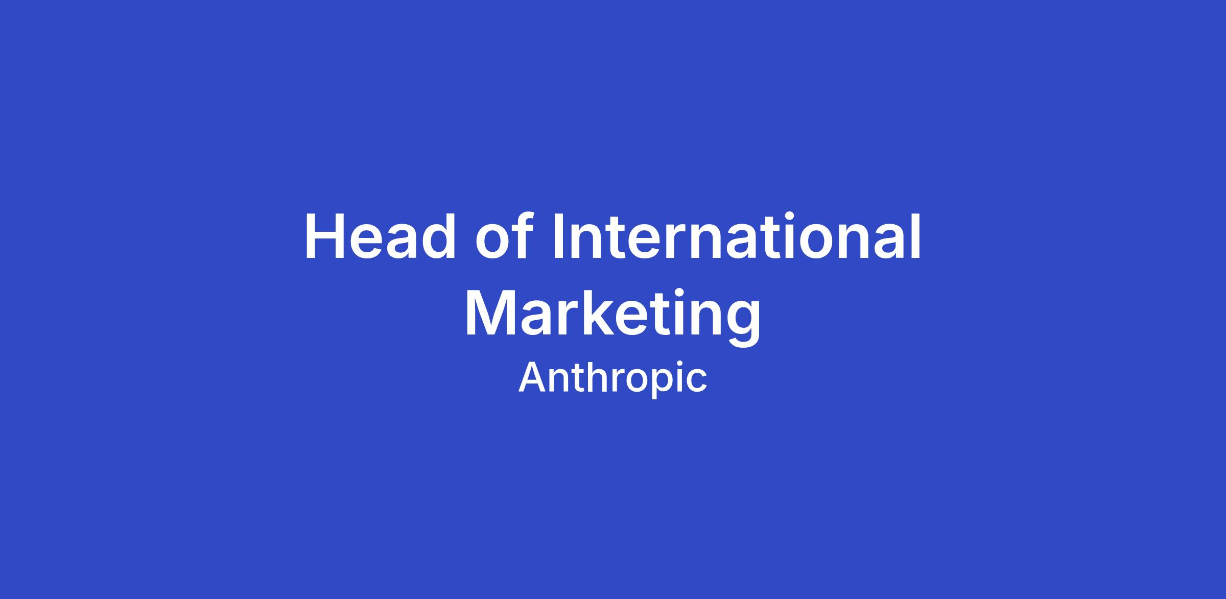 As the Head of International Marketing at Anthropic, you will lead our regional marketing strategy across international regions, driving pipeline generation and revenue growth for our rapidly expanding international enterprise business. This is a senior leadership role that sits at the intersection of marketing strategy and sales execution, responsible for building and scaling a high-performing international marketing organization that accelerates enterprise adoption of Claude across diverse global markets.