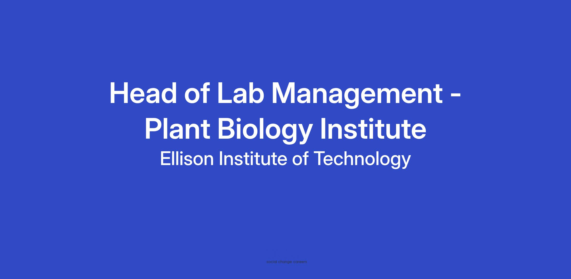 EIT is seeking a Head of Lab Management to lead the establishment and long-term operations of laboratory management at the Plant Biology Institute (PBI), part of the Ellison Institute of Technology. This pivotal leadership role will be responsible for building and overseeing a team of lab managers and technicians, guiding them in creating and maintaining a world-class research environment.
