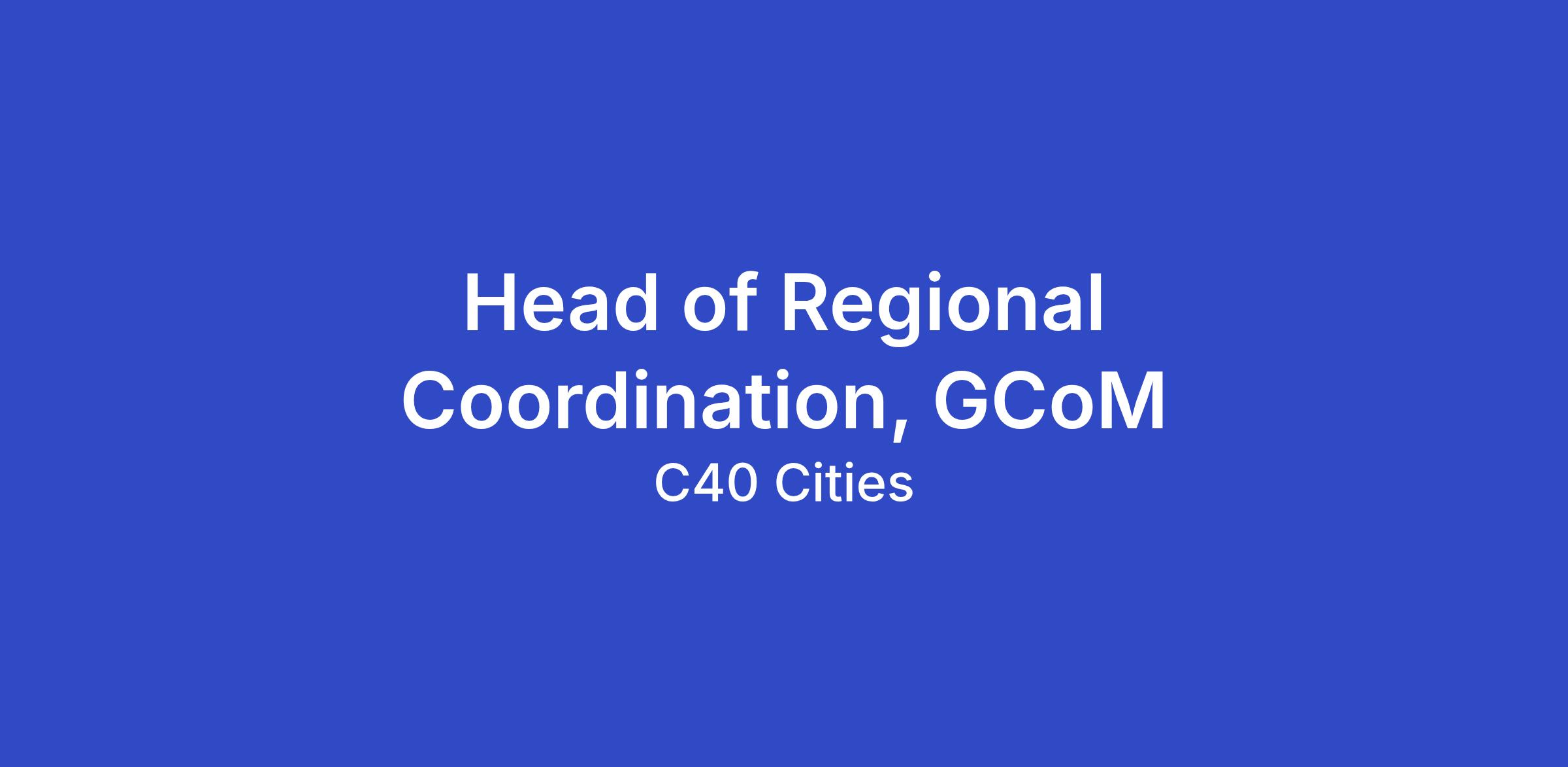 The Head of Regional Coordination role plays a key part in the delivery of the GCoM Strategic Plan, aligning and coordinating with the 13 Regional and National Covenants - inclusive of their constituent city networks and supporting partners - as well as the global city networks and other agencies complementing their efforts. The postholder will bring their experience of the dynamic and context specific challenges facing city climate action in different parts of the globe and leverage their connections and networks to build strong partnerships to overcome these barriers, resulting in deeper, more meaningful climate action plan implementation across multiple regions.