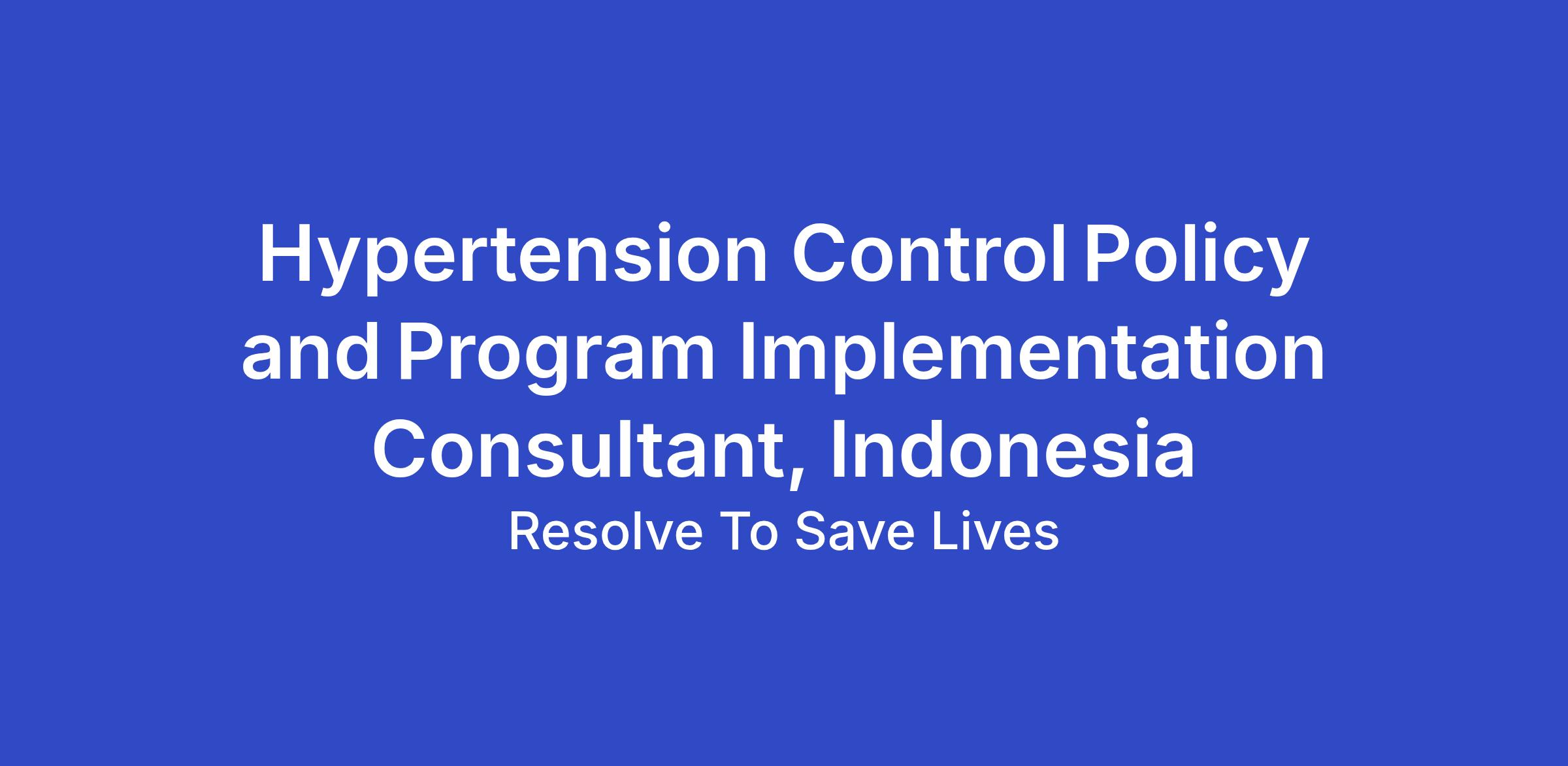 The Policy and Program Implementation Consultant will support implementation of hypertension control interventions in alignment with national guidelines and the WHO HEARTS technical package in Indonesia.