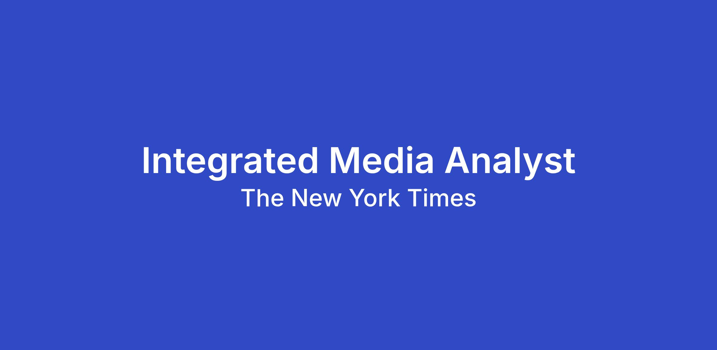 The New York Times' Advertising team is looking for an Integrated Media Analyst who is a digital campaign operations, analysis, and optimization expert. You will have two primary remits, to manage NYT Advertising's Paid Post campaigns and paid Social Post campaigns. This is a hybrid role based in our New York headquarters, reporting to the Integrated Media Manager. You can typically expect to be in the office 3 days per week.