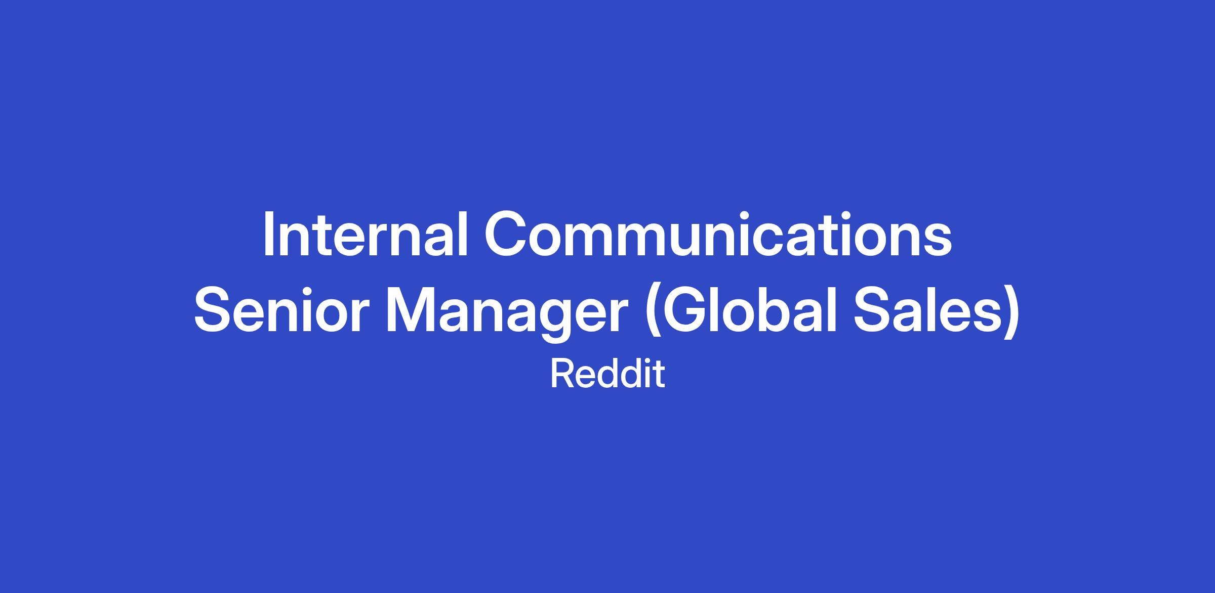 We are eager to add an exceptional Internal Communications Senior Manager to our ranks. As an individual contributor reporting to the Head of Internal Communications, this individual will be a dedicated business partner to Reddit’s EVP of Advertising Sales and the Global Sales Organization (GSO). This role presents a unique opportunity to spearhead internal communications strategy and execution for one of the company’s largest and most dynamic business functions. This individual should multiply productivity for the Global Sales Organization, bringing Reddit’s Internal Communications pillars to life: