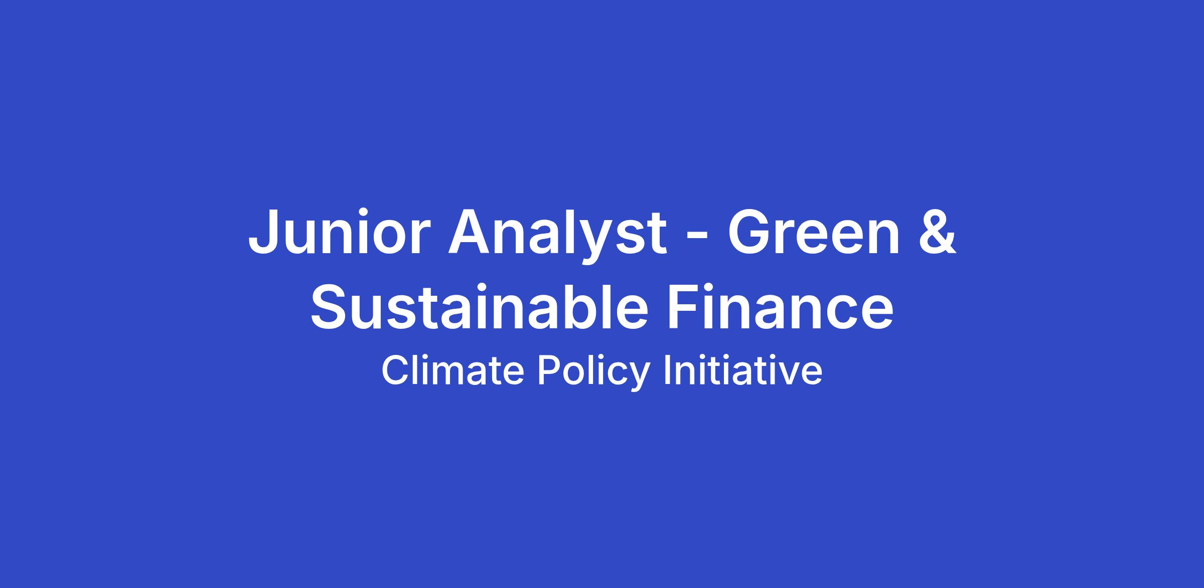Junior Analyst, Green & Sustainable Finance, CPI India