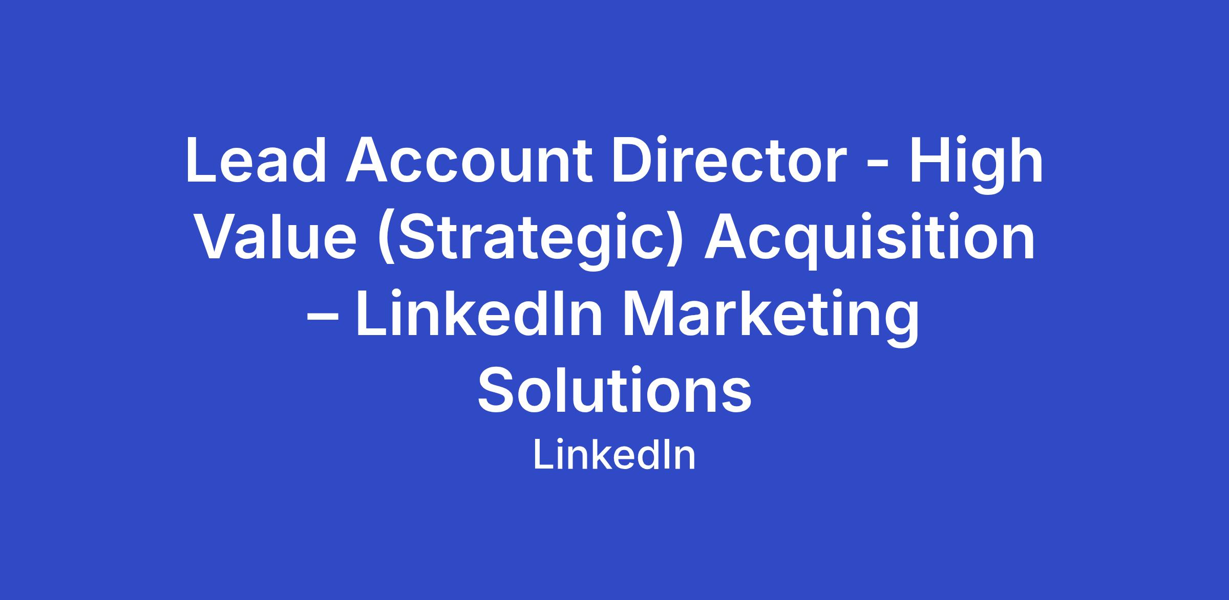 Lead Account Director - High Value (Strategic) Acquisition – LinkedIn Marketing Solutions