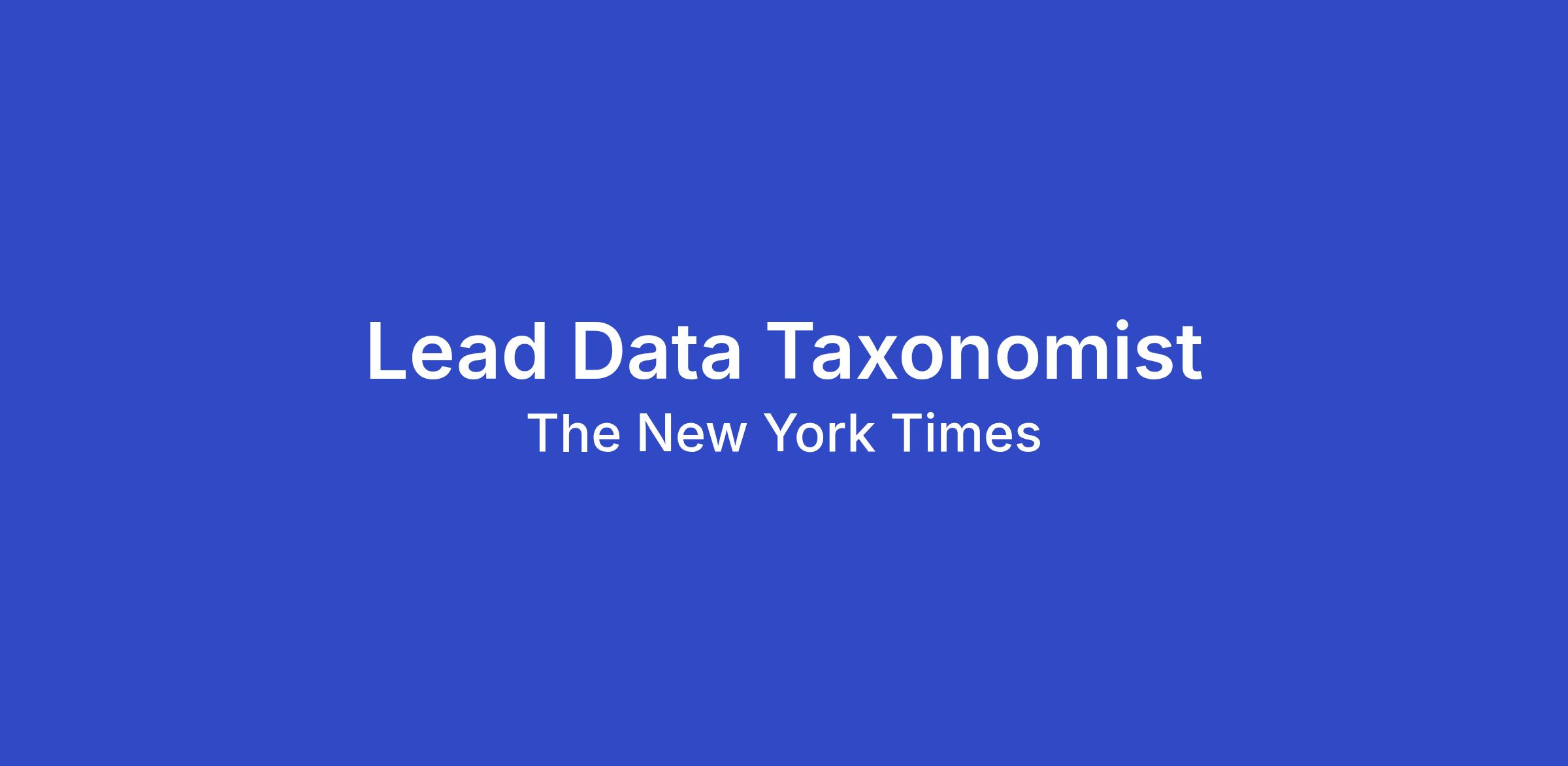 The New York Times is looking for a Lead Data Taxonomist to serve as the architect and steward of our enterprise-wide event taxonomy. The New York Times is home to multiple products across News, Games, Cooking, Wirecutter, and The Athletic with billions of monthly events. Therefore, the need for a unified, governed, and high-quality data language is critical. In a long-term effort, it will dramatically improve data quality at the New York Times and power real-time recommendation engines, personalization algorithms, and future AI initiatives.