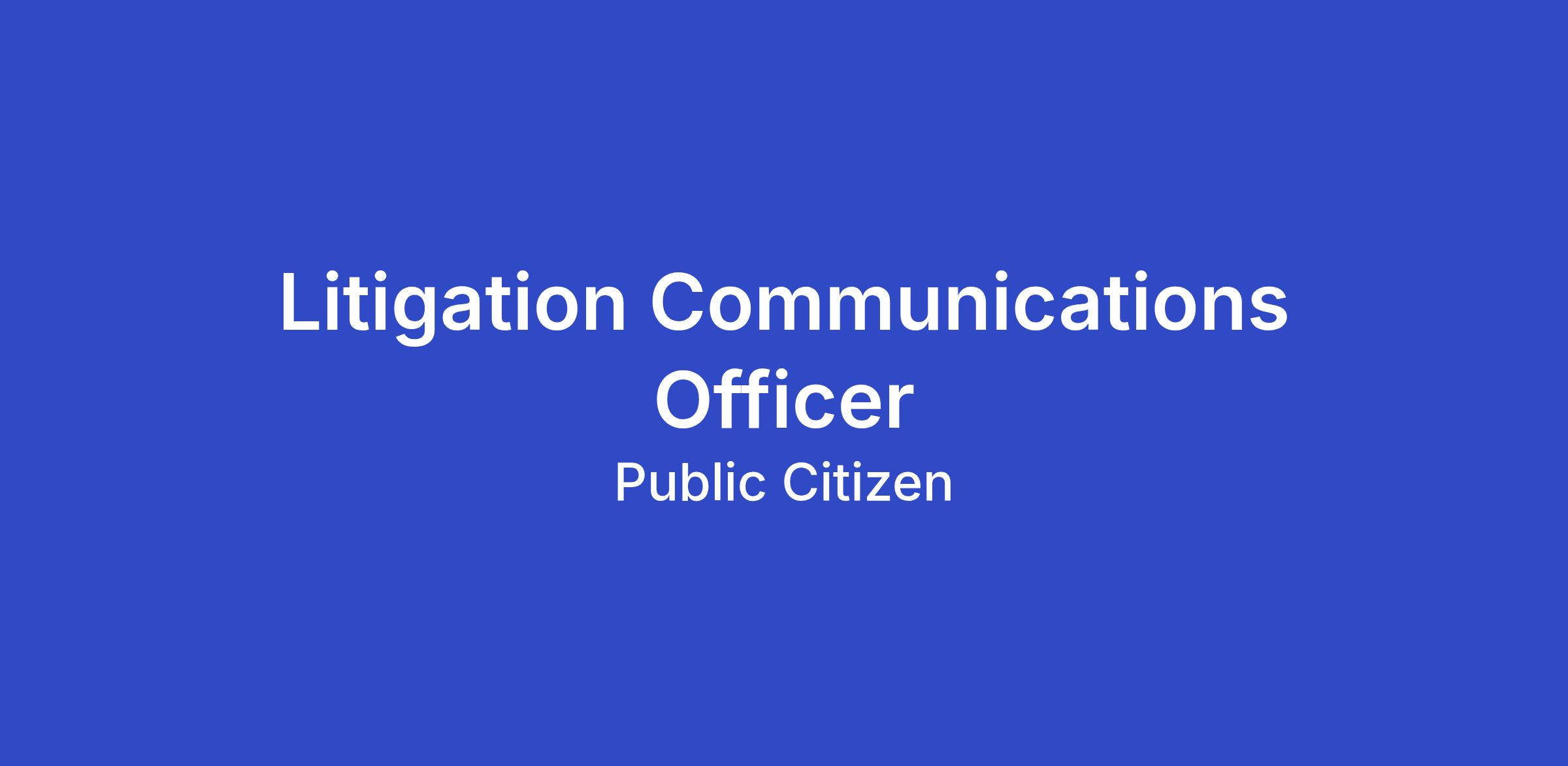 The Litigation Communications Officer will be responsible for publicizing and generating media attention for our litigation against the Trump administration, as well as related policy work. We seek someone bright and nimble, with a passion for public interest work and a solid knowledge of the legal and political news landscapes. We need someone who has strong writing skills, pays keen attention to detail, can work in a fast-paced environment, and enjoys collaborating with others. The Litigation Communication Officer will be part of a communications team that works closely together to coordinate media outreach with social media, email activism, and communication to Public Citizen members. This position reports to the Director of Communications and works closely with the Deputy Director of Communications.