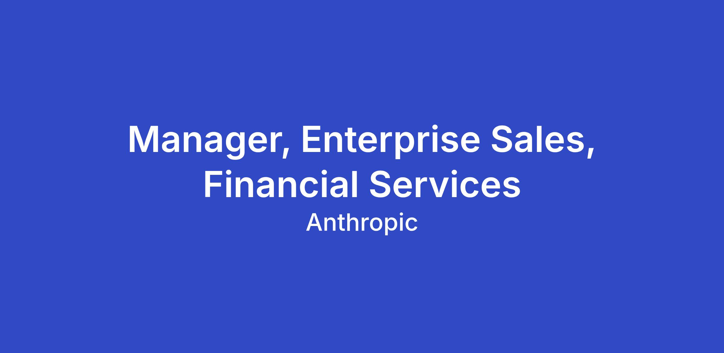 Manager, Enterprise Sales, Financial Services
