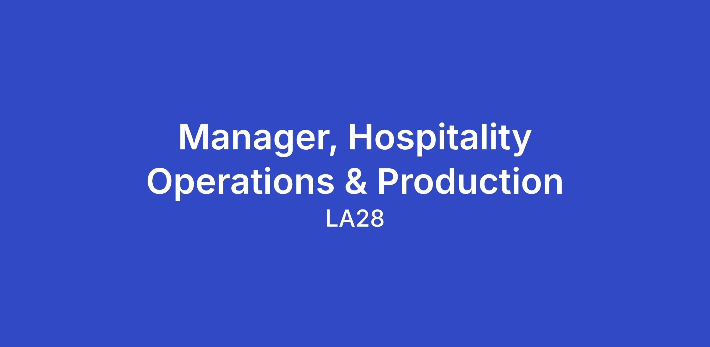 Reporting to the Senior Manager, Hospitality Operations & Event Production, the Manager, Hospitality Operations & Production will oversee venue-specific hospitality production within Olympic and Paralympic venues. This position will be responsible for executing key production and delivery components of in-venue hospitality (IVH), including oversight of hospitality builds, vendor coordination, budget management, and onsite delivery support. Serving as a critical liaison, the Manager will align On Location’s hospitality delivery plans with LA28’s internal functional areas, including Venue Infrastructure, Event Venue Management, Security, Procurement, and other key stakeholders. The role requires strong cross-functional collaboration, project management, budget ownership, and experience delivering complex venue environments and live event execution.