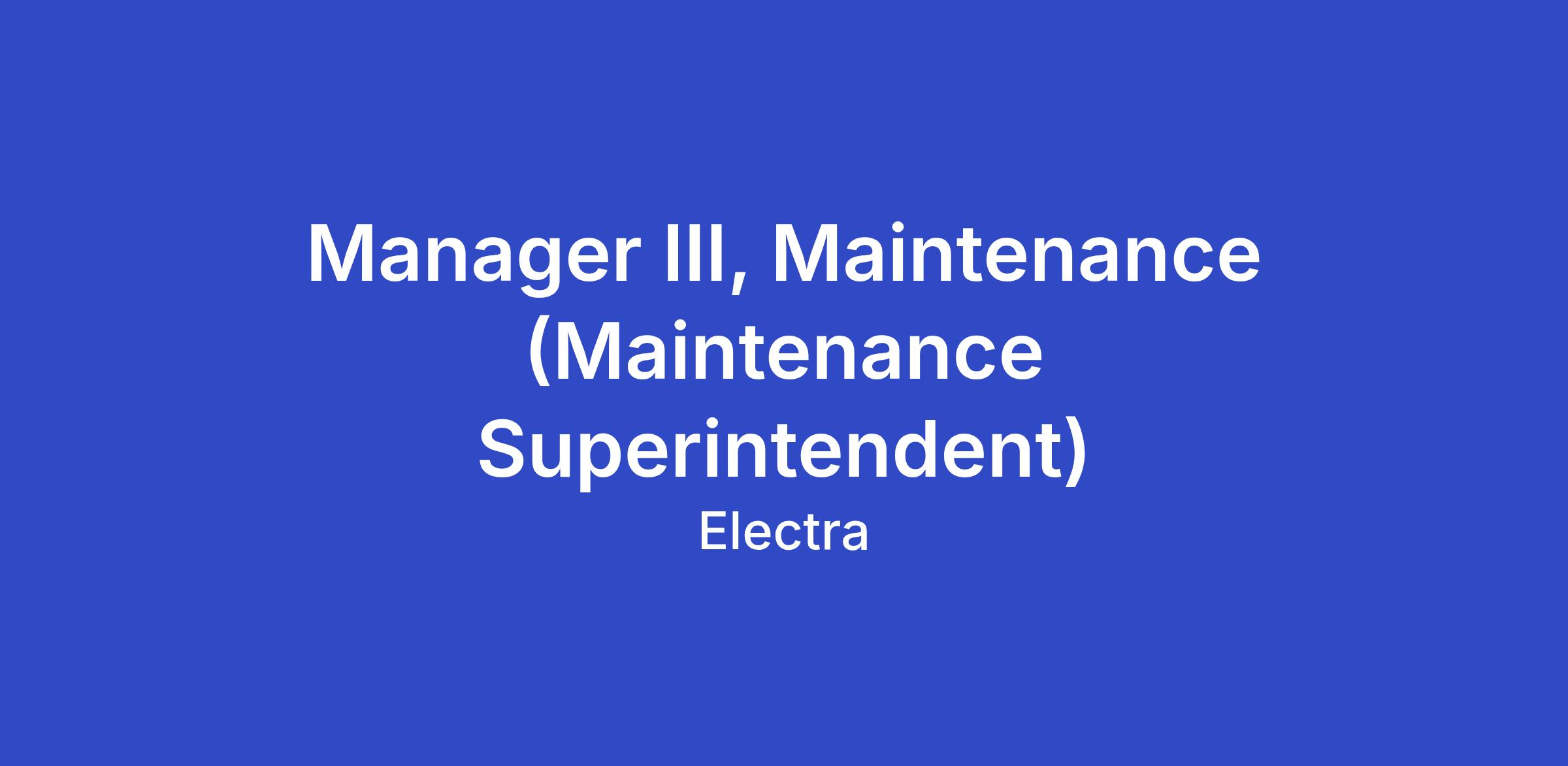 Electra is seeking an experienced Manager III, Maintenance to lead all mechanical and facility maintenance at our new clean‑iron demonstration plant. This role supports commissioning and startup while ensuring the reliability, safety, and efficiency of plant equipment and infrastructure.