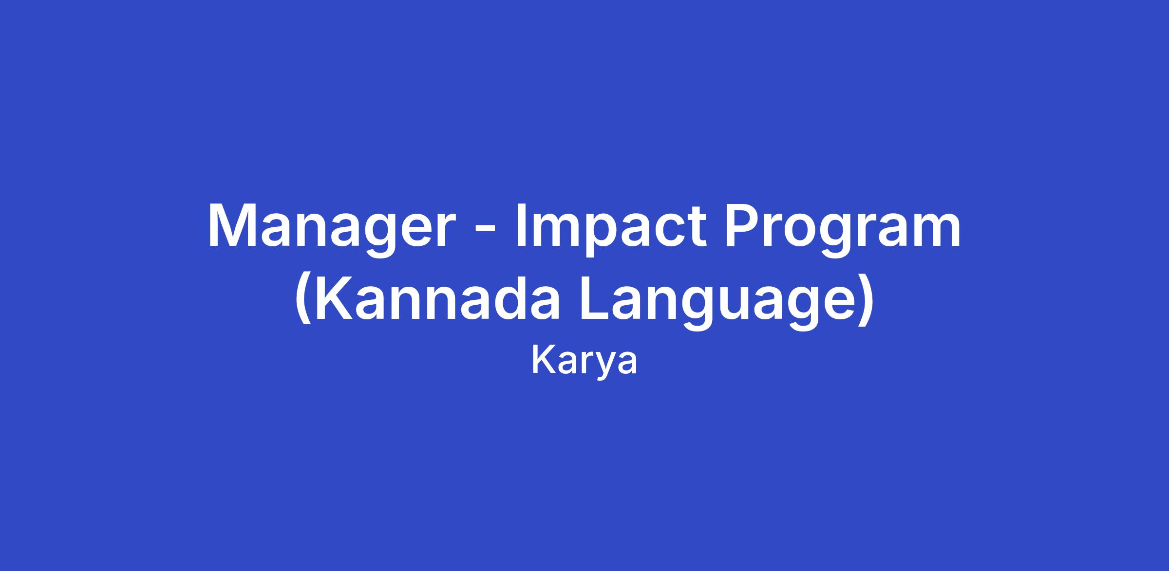We are looking for an organised and proactive individual to fill a hybrid role as a Manager - Impact Program in the Kannada Language.
