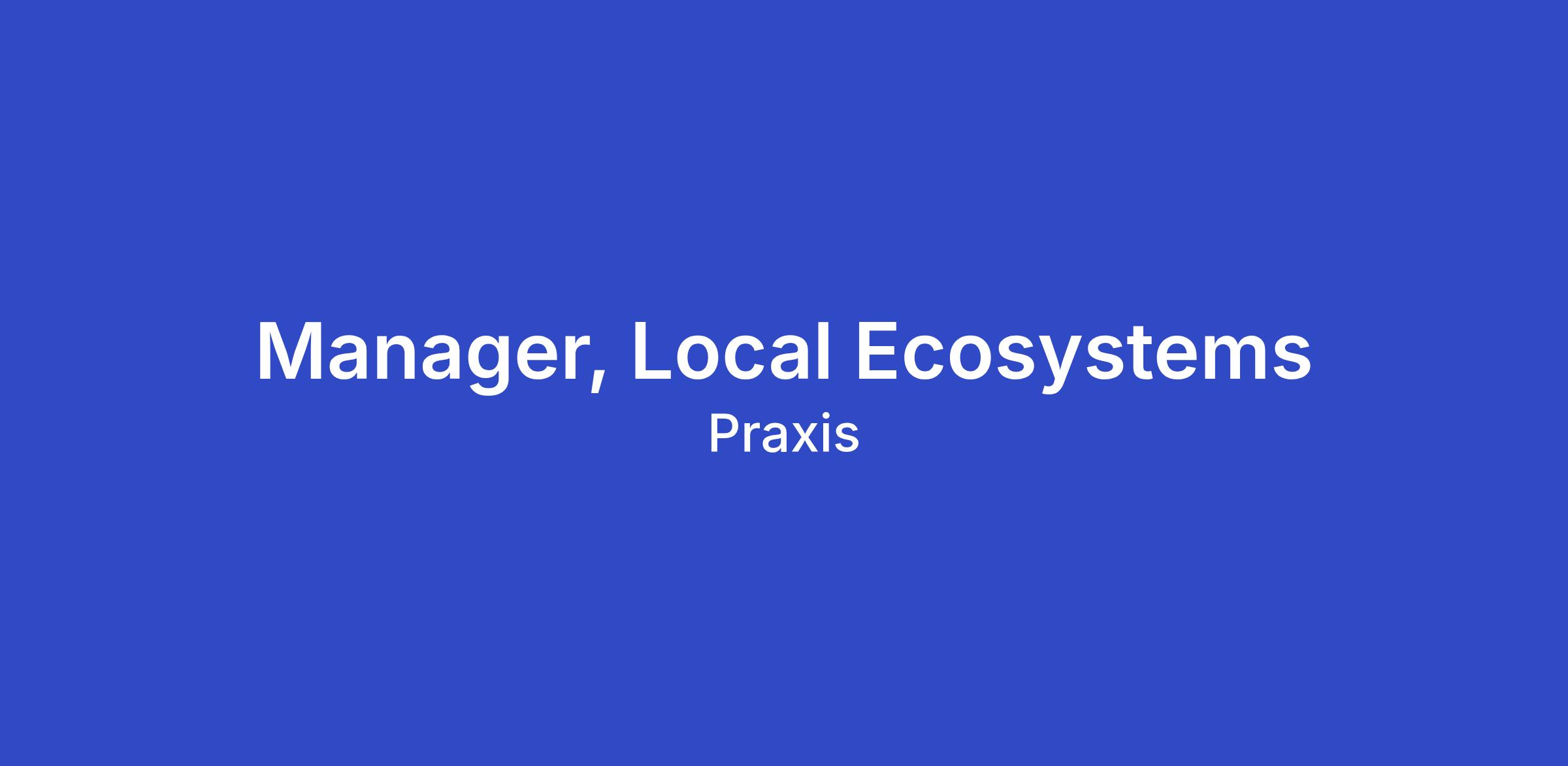 The Manager, Local Ecosystems is based at Praxis' headquarters in New York City and reports to the Senior Director of Global Venture Ecosystems. This role helps build and manage the systems, communications, community management, and program execution that support city ecosystem leaders around the world, from the moment they're recruited and trained through their ongoing development as builders of local redemptive ecosystems.