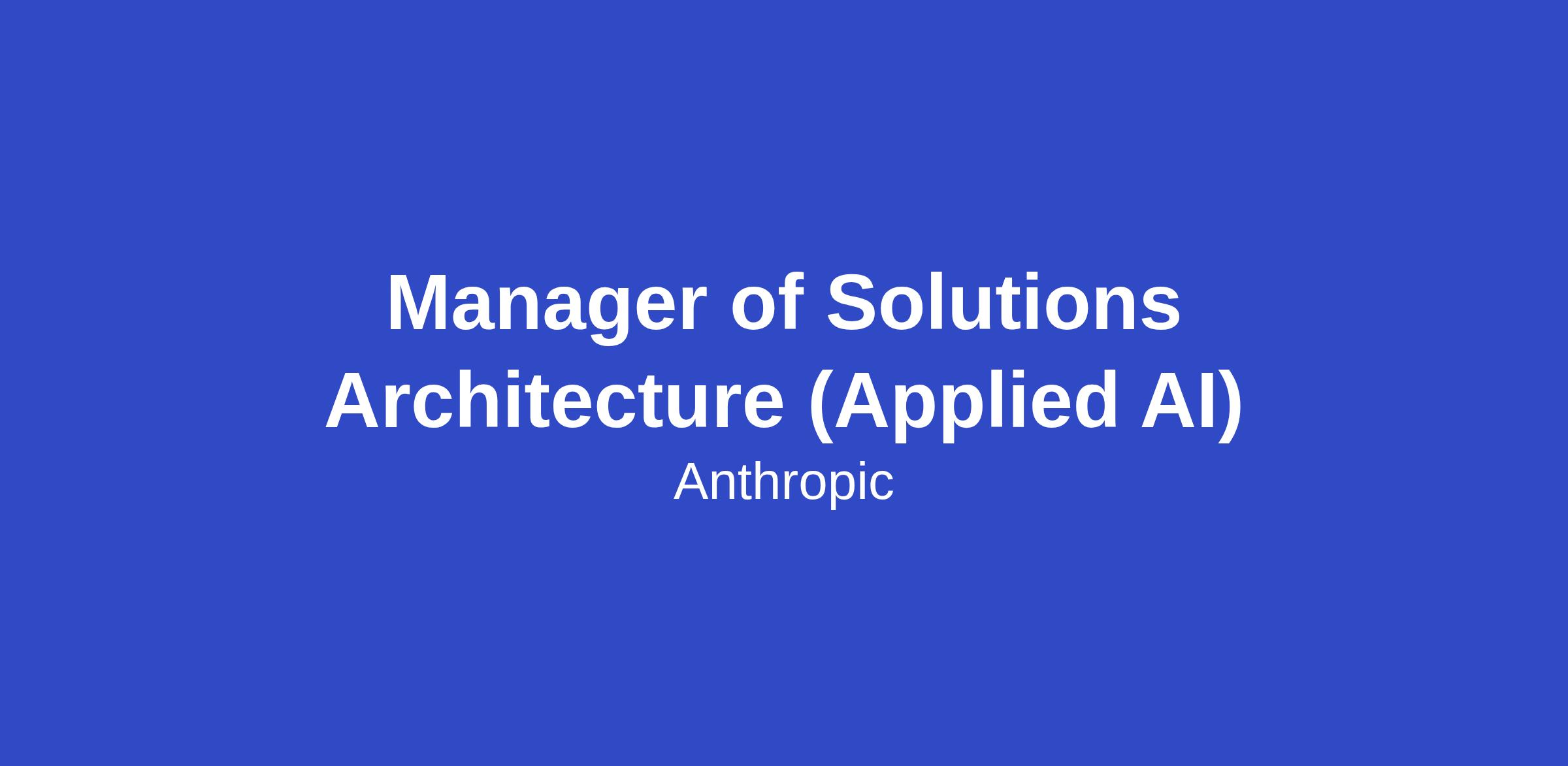 As the Manager of the Applied AI Architect team for DACH Industries at Anthropic, you will drive the adoption of frontier AI by enabling the deployment of Anthropic's products (Claude for Enterprise, Claude Code, and API) across our Industries accounts: large enterprises across all non-tech verticals in Germany, Switzerland and Austria. You'll leverage your technical skills and consultative sales experience to drive positive AI transformation that addresses our customers' business needs, meets their technical requirements, and provides a high degree of reliability and safety.