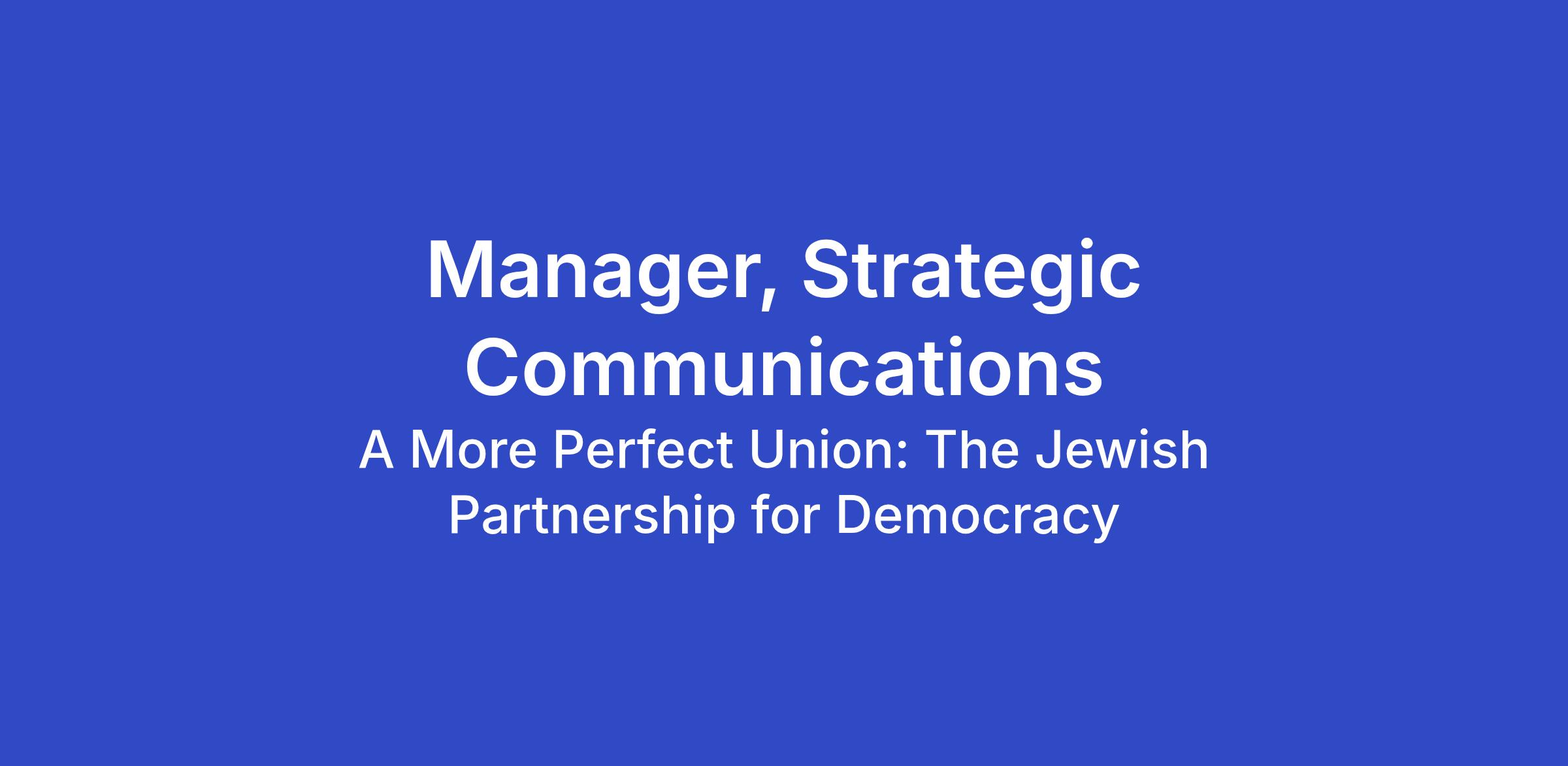 The Manager, Strategic Communications is responsible for translating A More Perfect Union’s strategic priorities into clear, consistent, high-quality communications execution across digital channels, campaigns, and organizational platforms. The Manager owns day-to-day communications execution while also contributing to strategic planning, analytics, and campaign development. This role sits at the intersection of our research, programs, and partnerships work and ensures that our messaging, digital presence, and audience engagement are aligned, timely, and impactful.