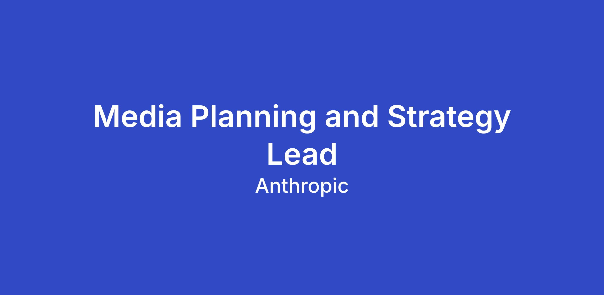 As the Media Planning and Strategy Lead Anthropic, you will develop and fully own and execute comprehensive media strategies that build awareness for Anthropic and Claude across our target audiences. You'll be a strategic leader within the Marketing organization, working at the intersection of brand building and performance marketing to ensure our media investments drive meaningful business impact.