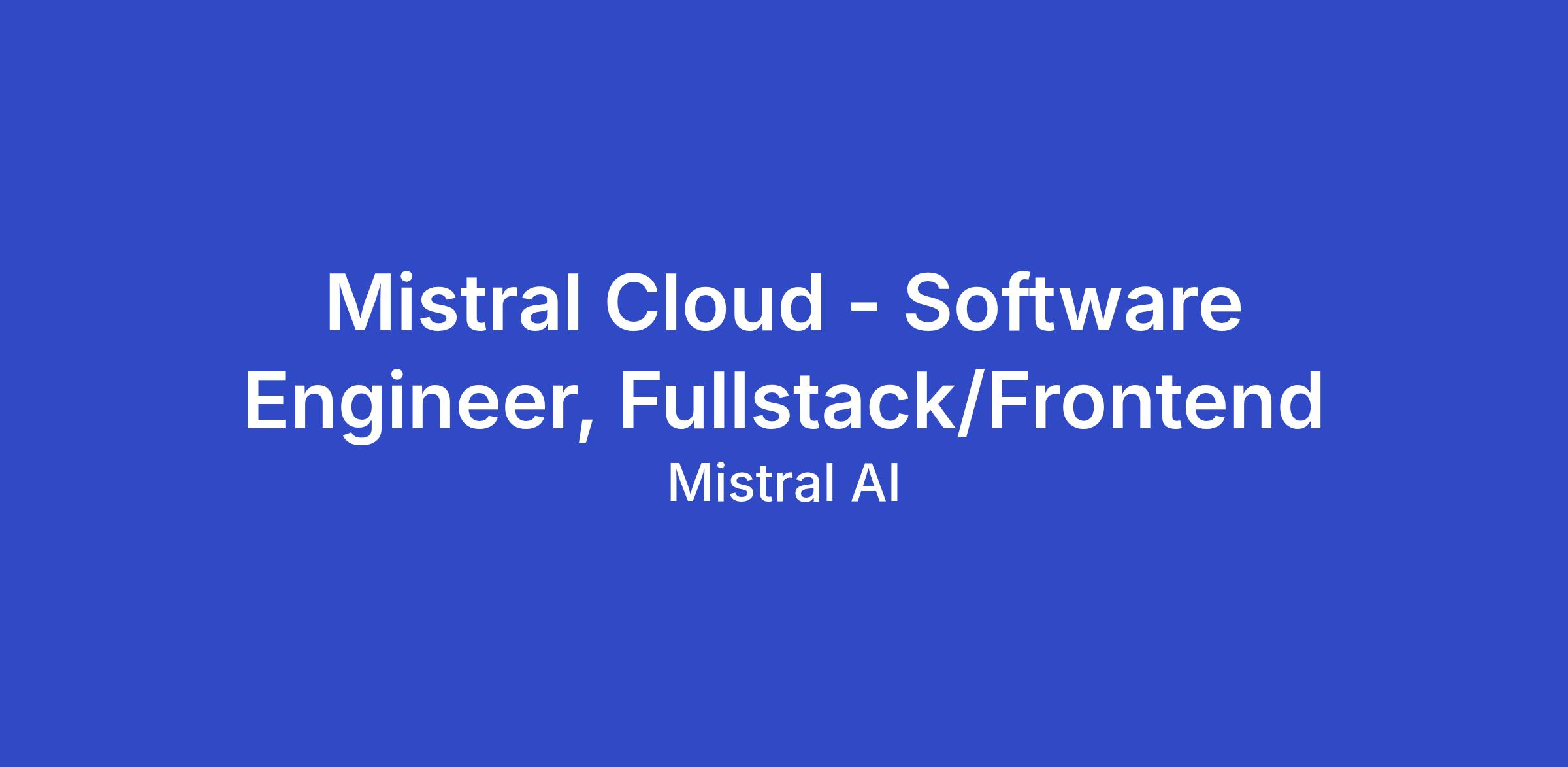 Mistral Cloud - Software Engineer, Fullstack/Frontend