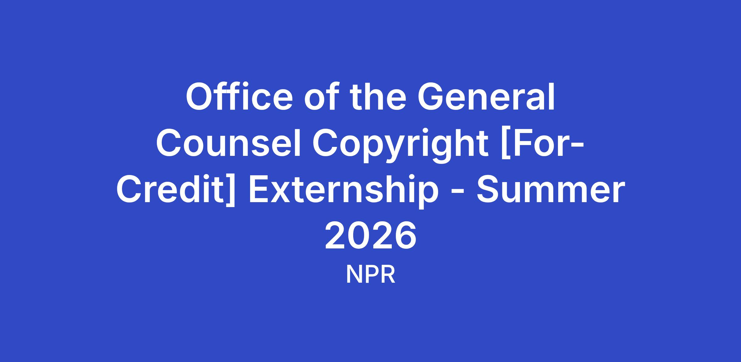 Office of the General Counsel Copyright [For-Credit] Externship - Summer 2026