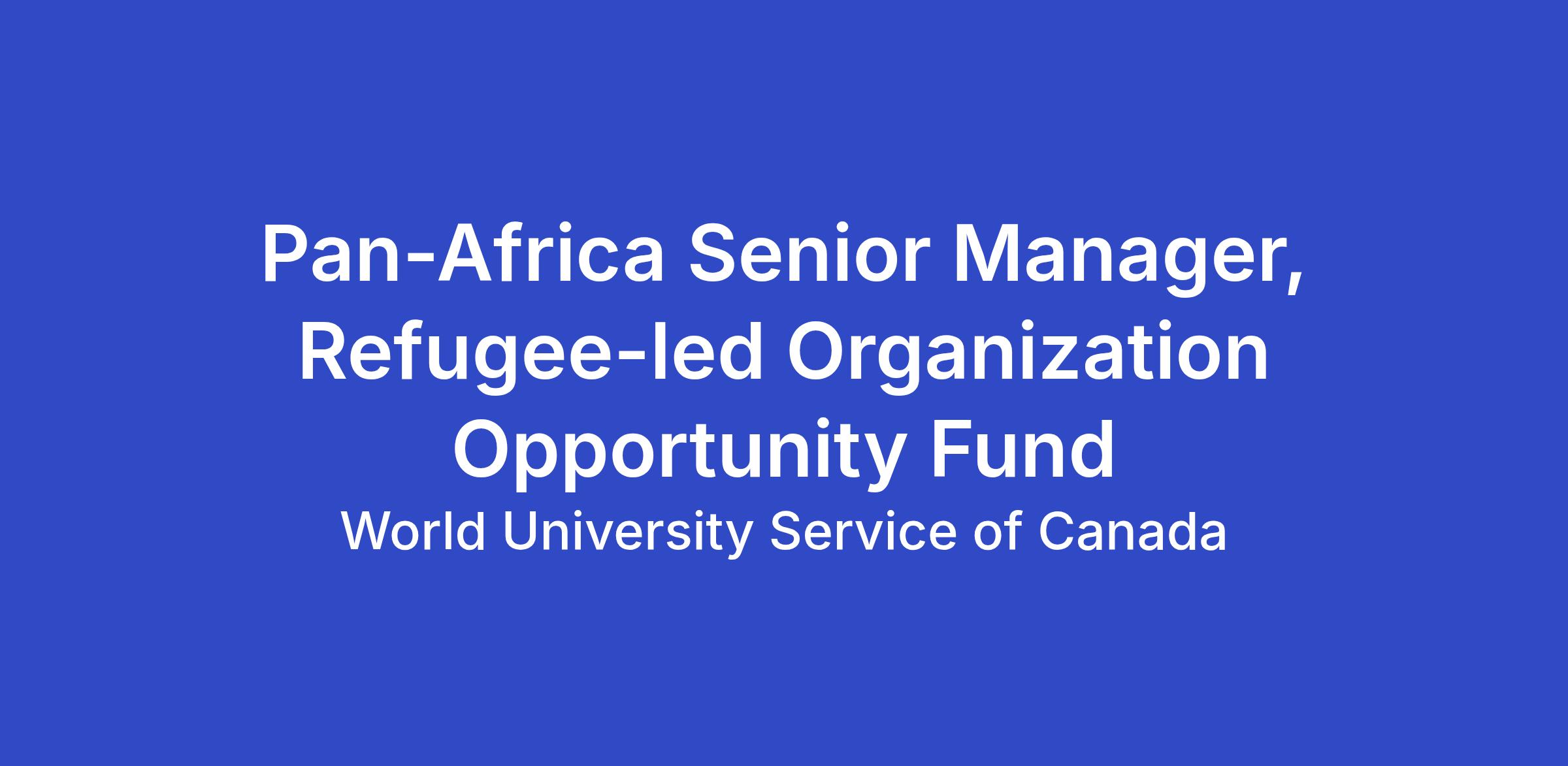 Position Title: Pan-Africa Senior Manager, Refugee-led Organization Opportunity Fund