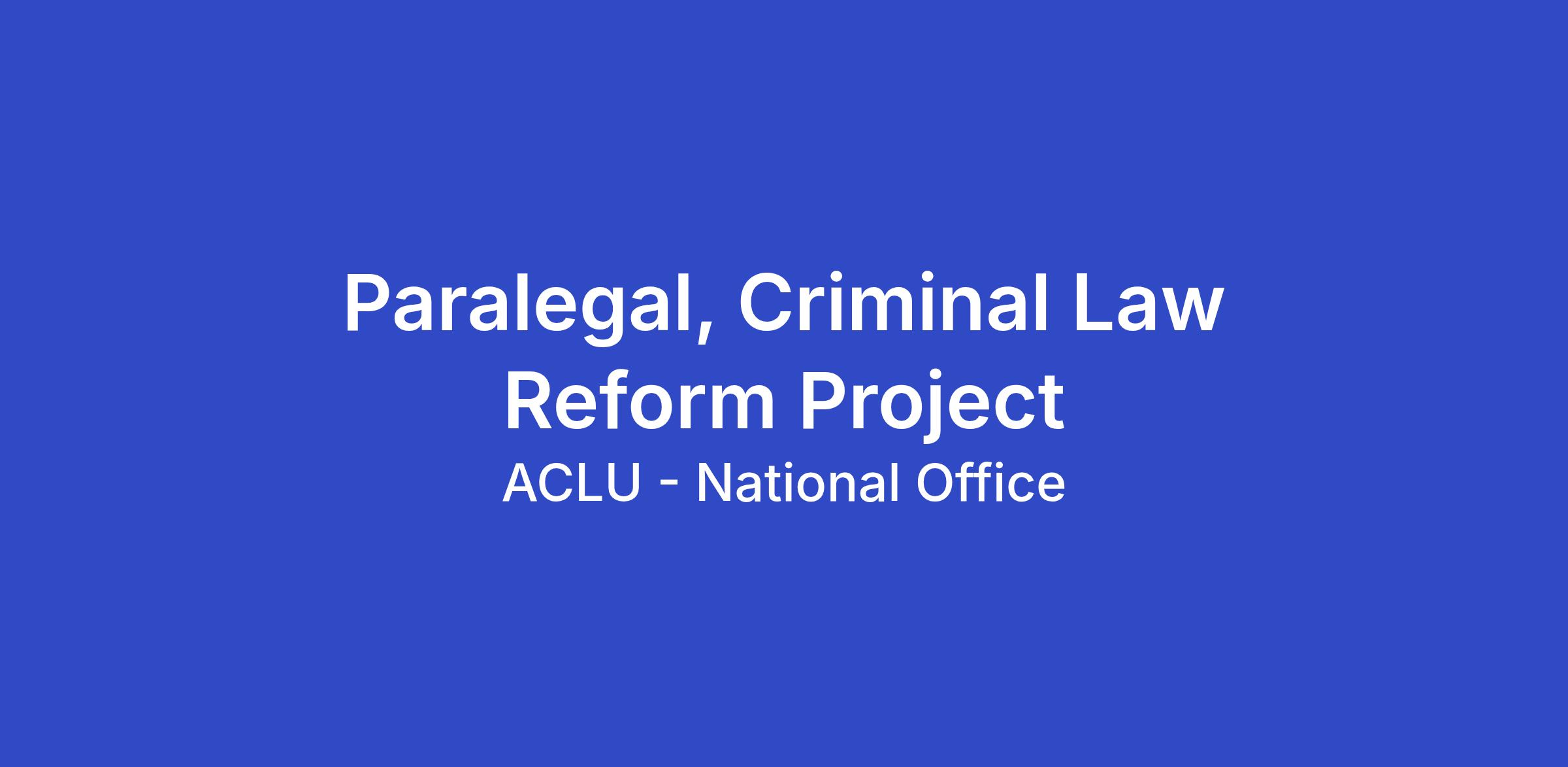 The ACLU seeks applicants for the full-time position of Paralegal in the Criminal Law Reform Project (CLRP) of the ACLU’s National office in New York, NY. This is a hybrid role that has in-office requirements of two (2) days per week or eight (8) days per month.