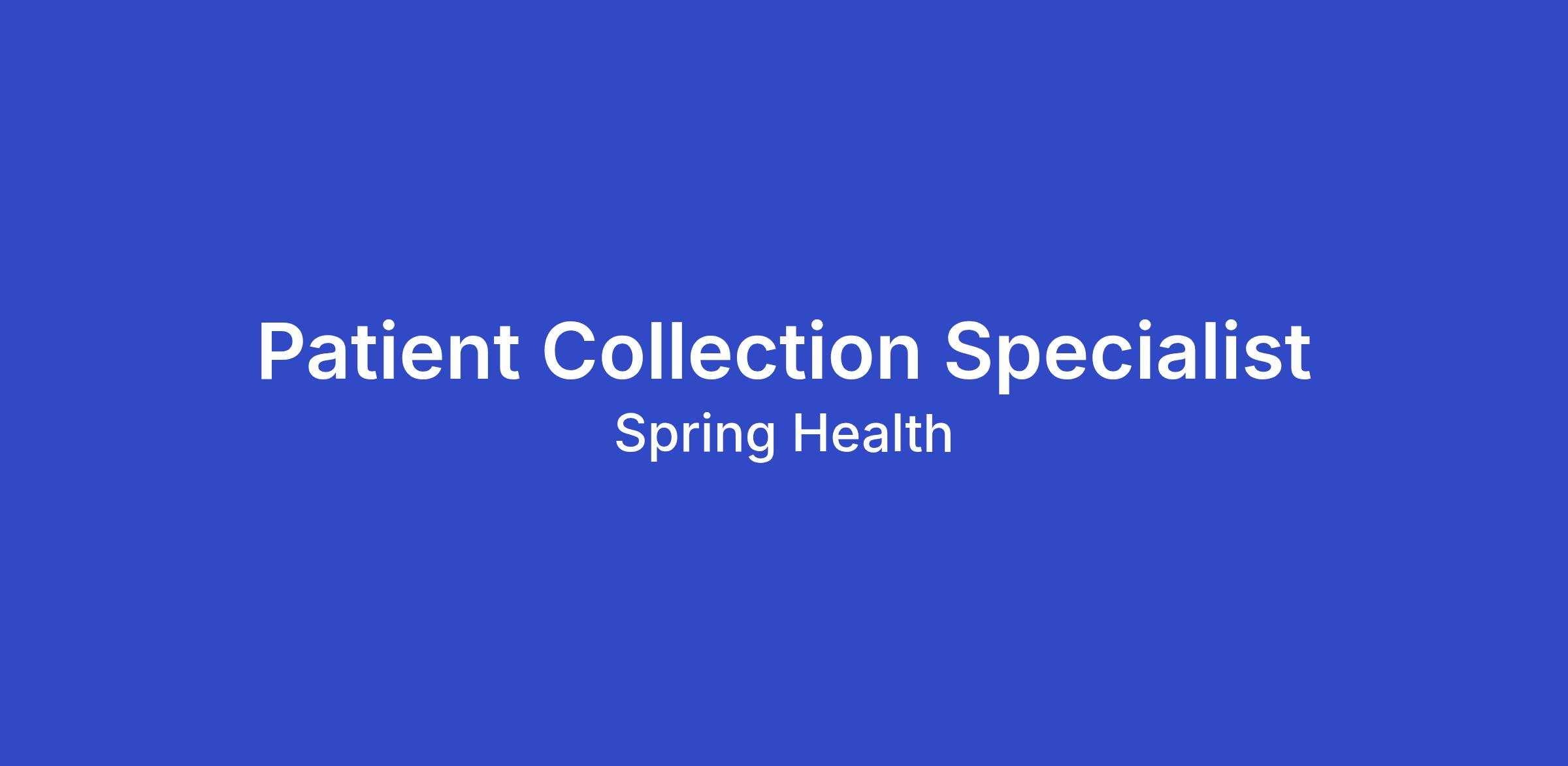 Reporting to the RCM Lead, the Patient Collections Specialist will oversee and execute patient collections initiatives in order to resolve outstanding patient balances in a timely, professional, and compliant manner. This remote role is part of the HOPS team and plays a critical role in supporting financial health and ensuring access to care by maintaining efficient collections processes. This is a full time remote position on our team. Occasional travel may be required for company or team events. At Spring Health we value internal mobility. We have identified a strong internal candidate for this position. We still encourage candidates to apply.