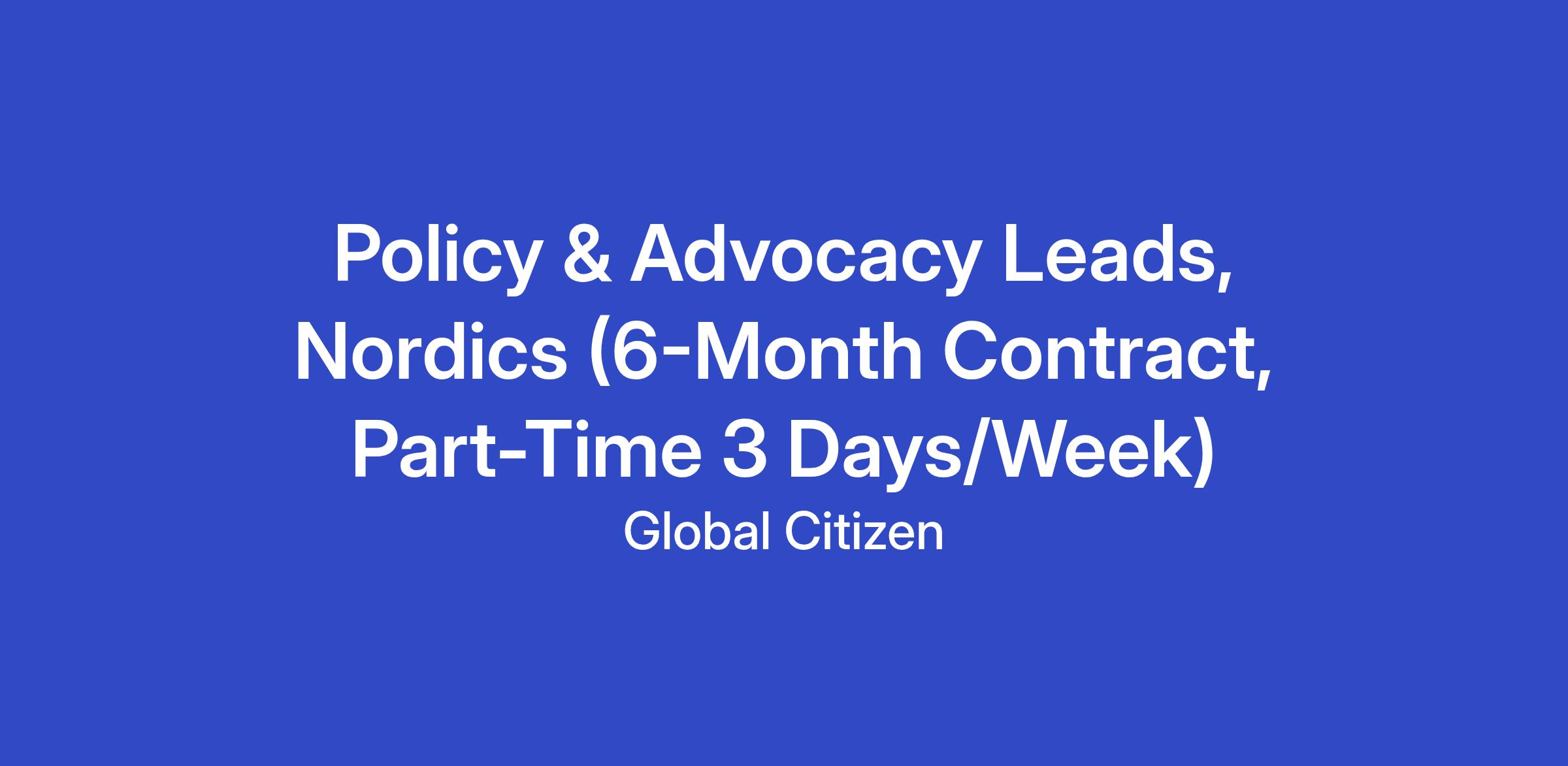 Policy & Advocacy Lead, Nordics (6-Month Contract, Part-Time 3 Days/Week)