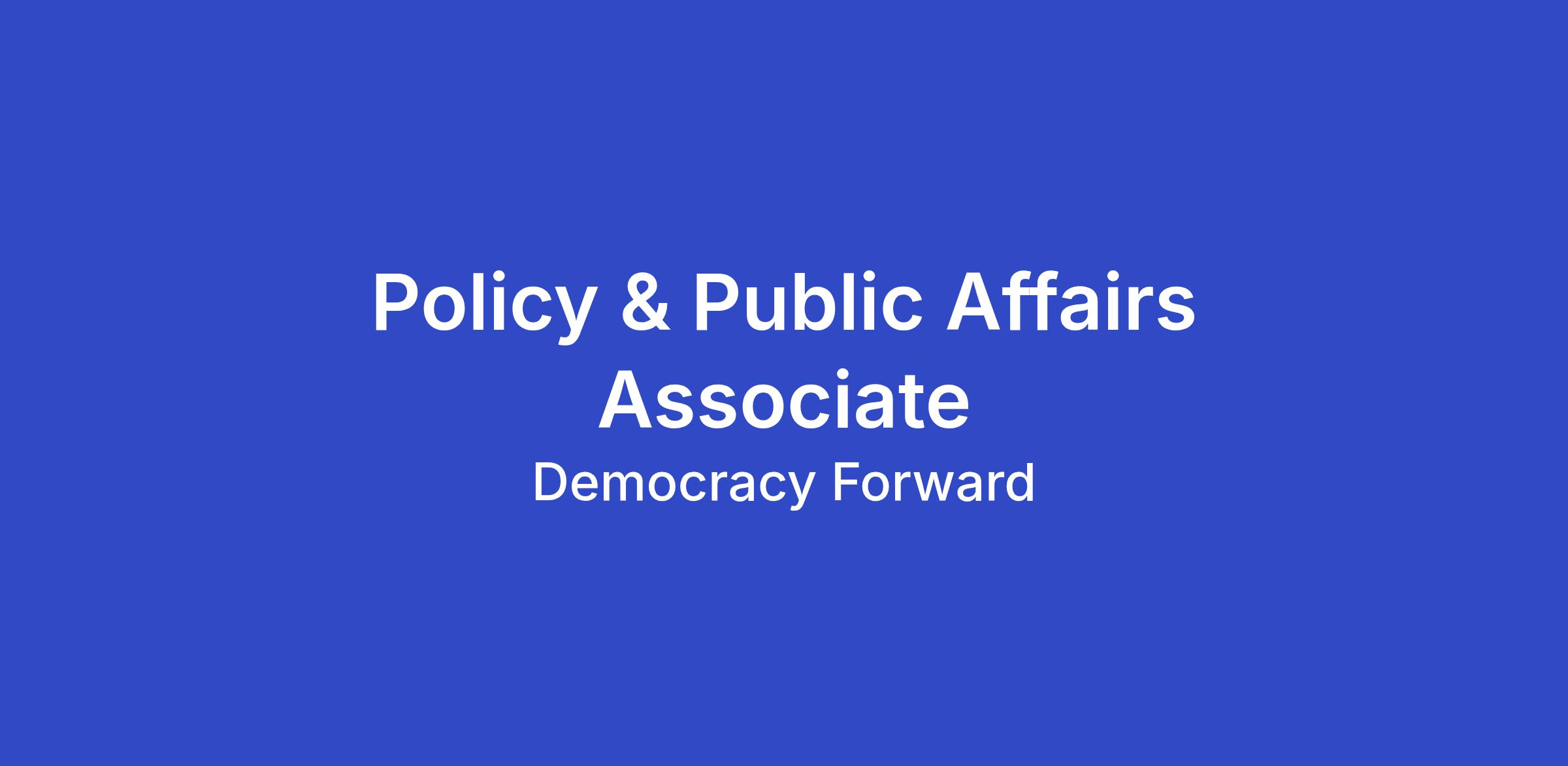 Are you a highly motivated and organized individual with an interest in public affairs? If so, Democracy Forward Foundation (“Democracy Forward”) is seeking a Policy and Public Affairs Associate to support our Policy and Public Affairs (PPA) team. This role will manage projects that promote and communicate our policy goals, engage stakeholders, and drive advocacy strategies. This role requires a detail-oriented project manager who can provide project tracking, occasional content creation, and organizational support to the team. While this role will primarily support the communications vertical on the team, they may also occasionally support other verticals including digital, press, and policy.