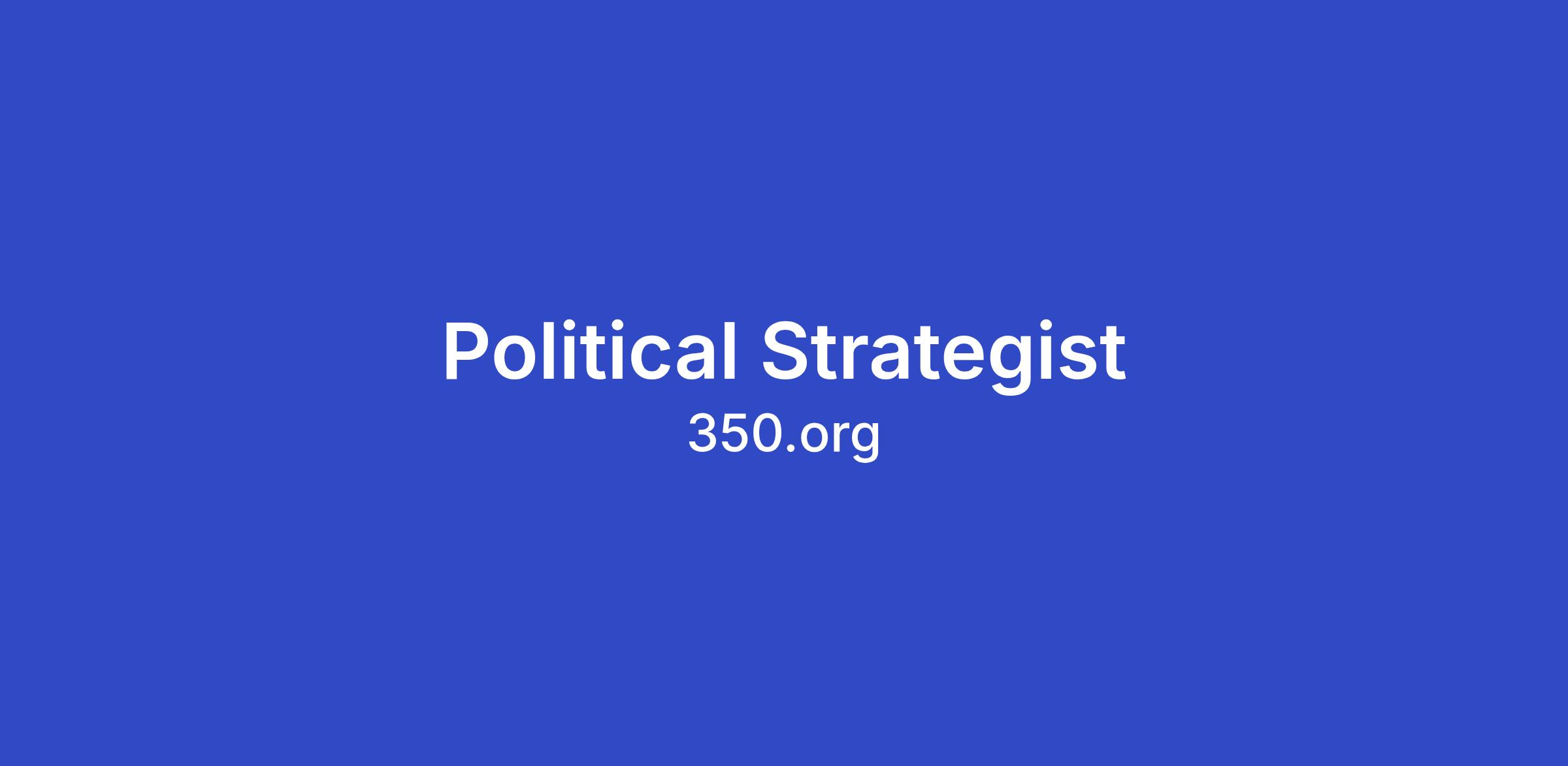 This role sits at that intersection. As a Political Strategist, you will help translate 350.org's campaign momentum into concrete policy wins. Working across country and global teams, you'll identify political openings, sharpen our positioning at key moments (including COP cycles), and deepen our influence with policymakers, media, and political actors worldwide.