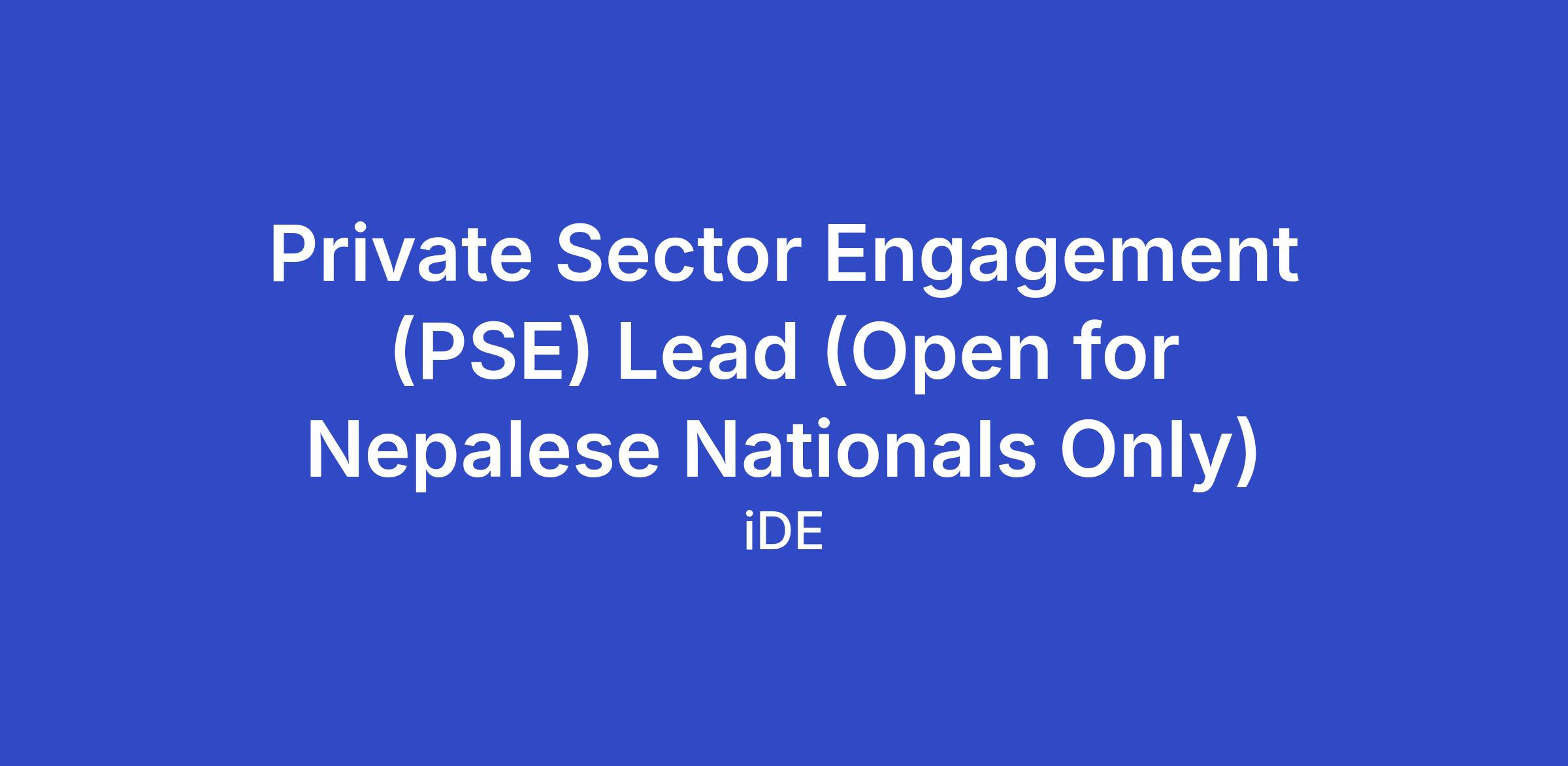 iDE Nepal is currently seeking a Private Sector Engagement (PSE) Lead to join our Programs Unit. The Private Sector Engagement (PSE) Lead is a senior strategic position responsible for leading iDE Nepal’s private sector engagement agenda to lead inclusive market systems and drive sustainable, market-based solutions across key sectors, including agriculture, WASH, nutrition, and climate resilience.