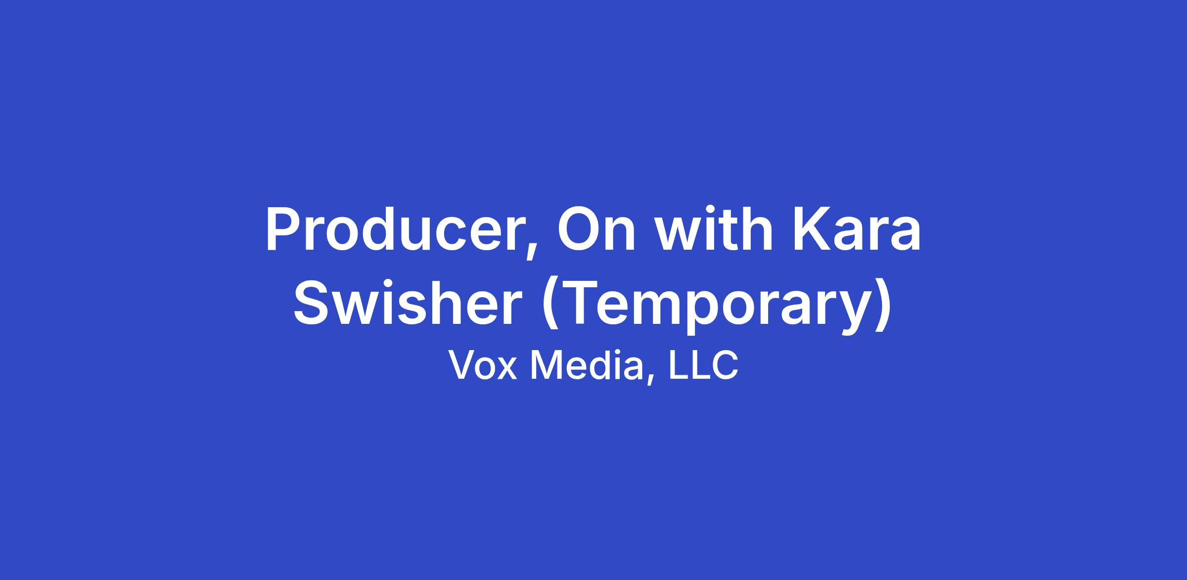 The Vox Media Podcast Network is seeking a temporary Producer for its award-winning show, On with Kara Swisher. This podcast reaches a large, influential audience and regularly features headline-making guests across politics, tech, and culture, including Kamala Harris, Bernie Sanders, Pete Buttigieg, Sam Altman, Geoffrey Hinton, Bill Gates, Margaret Atwood, Laverne Cox, and Louis Theroux.