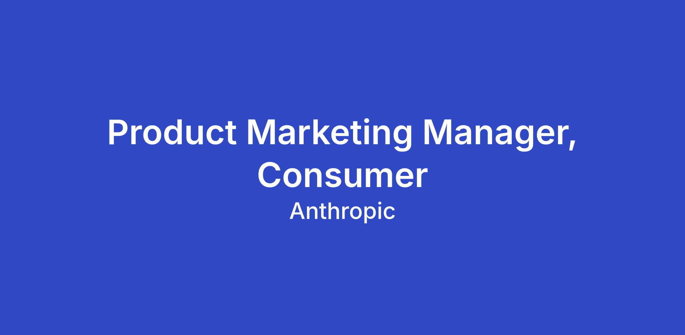 We're looking for a Product Marketing Manager, Consumer to make Claude the preferred AI for individual users. You'll own product marketing for Claude's core consumer experience and serve as the primary marketing partner to our consumer product team. This role sits at the intersection of product, growth, and brand: you'll shape how individual users discover, try, and fall in love with Claude through compelling positioning, sharp launches, and consumer-grade storytelling. You'll partner closely with our consumer growth team to drive acquisition and activation, and co-own Claude's consumer brand expression with our brand team. If you're a consumer marketer who wants to define how a generation adopts AI in their daily lives, this is the role.