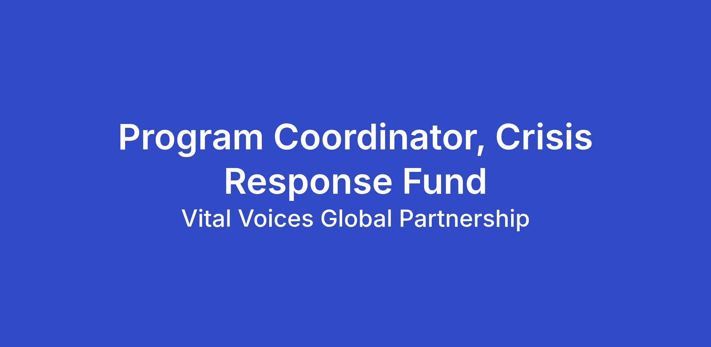 Position Title: Temporary Program Coordinator, Crisis Response Fund