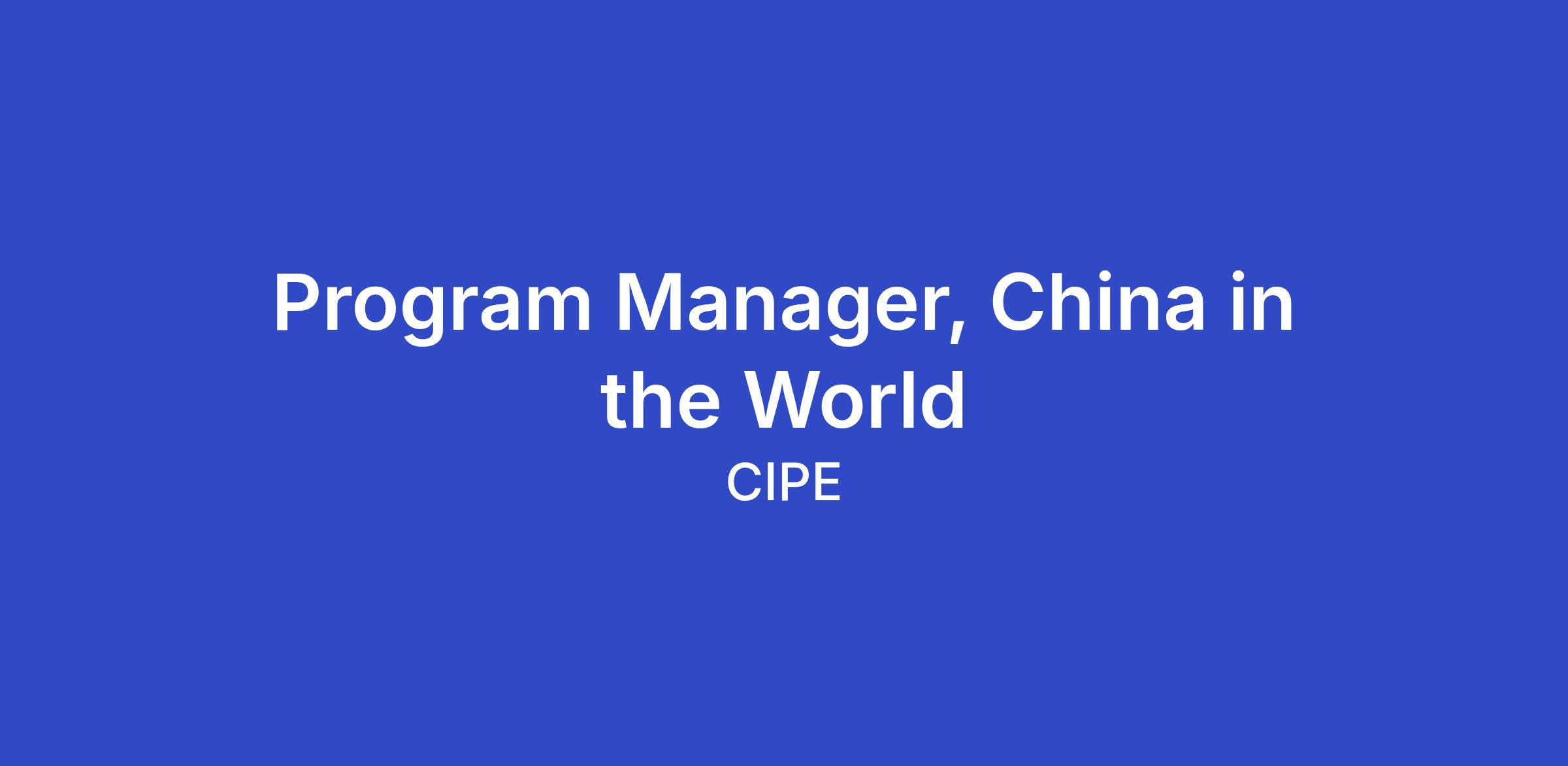 Position: Program Manager, China in the World