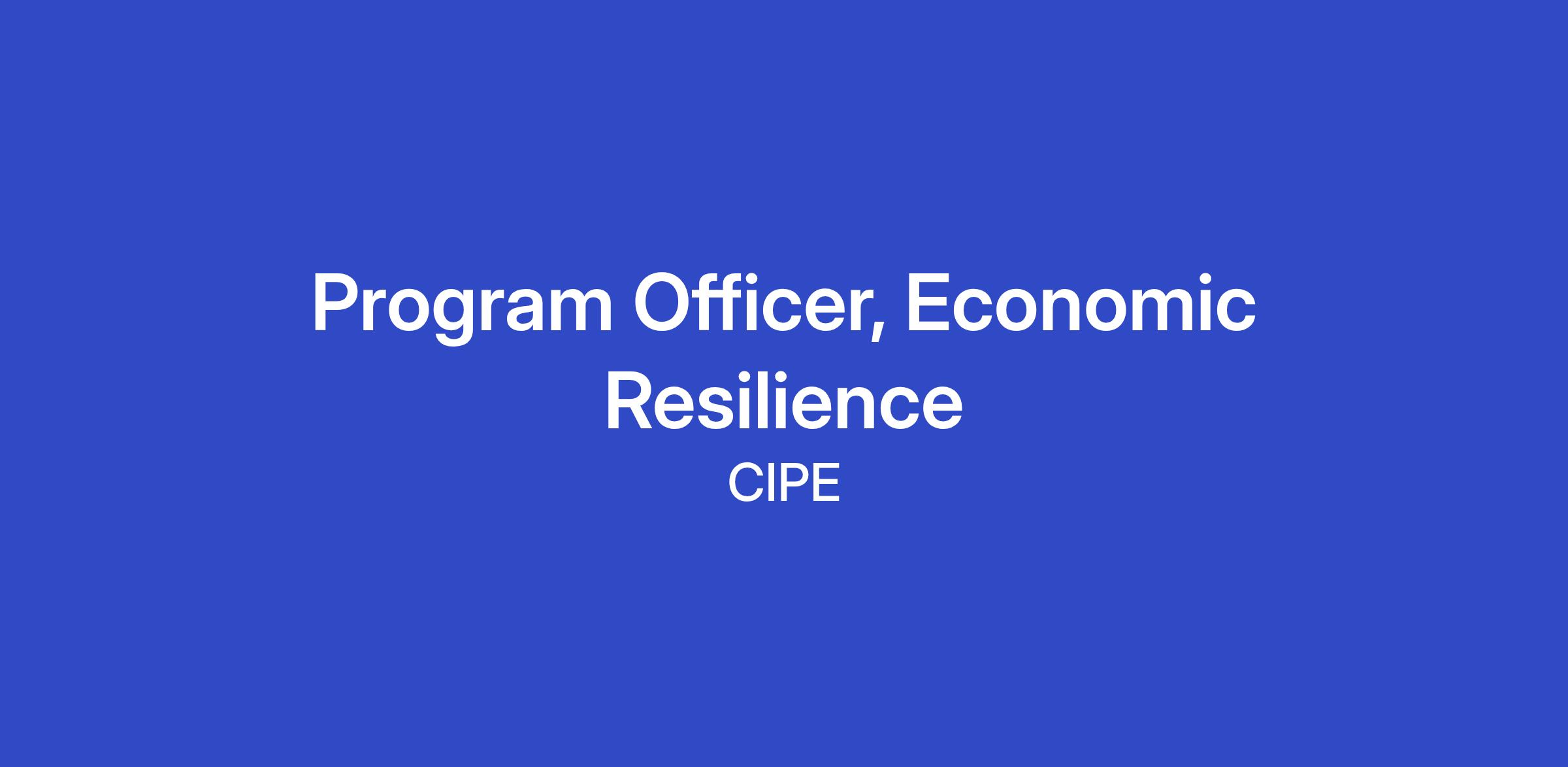Position: Program Officer, Economic Resilience