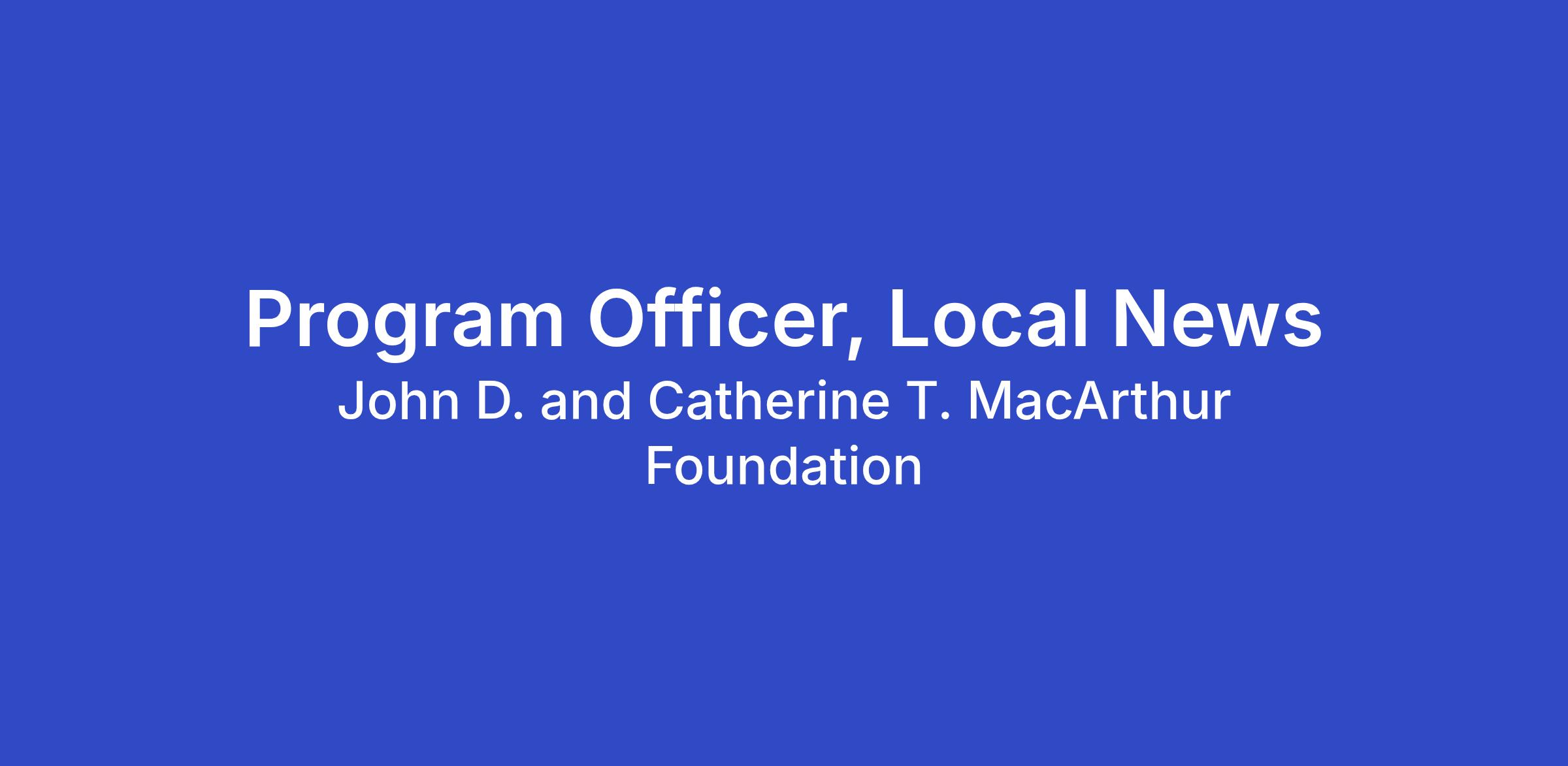 The Program Officer will work with the Director, Local News, and the administrative team to implement the Local News program’s strategic plan. The Program Officer will bring expertise in the journalism sector and local news landscape to develop and execute grantmaking, including across the Local News program’s four priority geographies: Chicagoland, U.S.-Mexico Borderlands, Appalachia, and the Southeast. In this role, the Program Officer will manage part of the grantmaking portfolio, build strategic relationships, contribute to analytical frameworks around local news archetypes and ecosystem progression, and help position the portfolio for its 2028 Strategy Review with the Board of Directors. The successful candidate will have substantial experience in journalism or local news infrastructure and a sophisticated understanding of how to strengthen nascent and emerging local news ecosystems.
