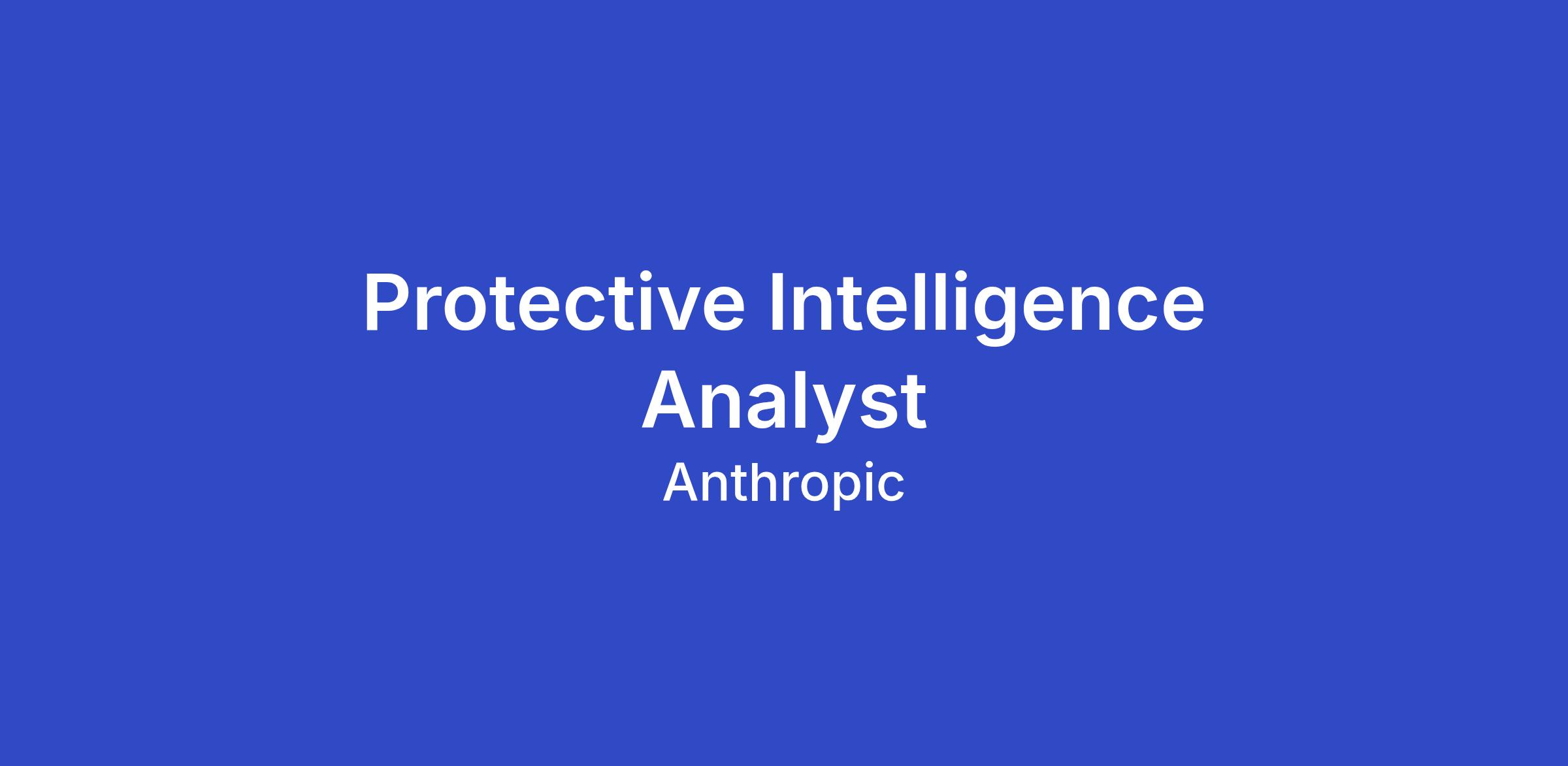 We are seeking a Protective Intelligence Analyst to join our growing protective services team. In this role, you will play a critical part in identifying, assessing, and mitigating threats to Anthropic's people, facilities, operations, and reputation through intelligence collection, analysis, and dissemination.